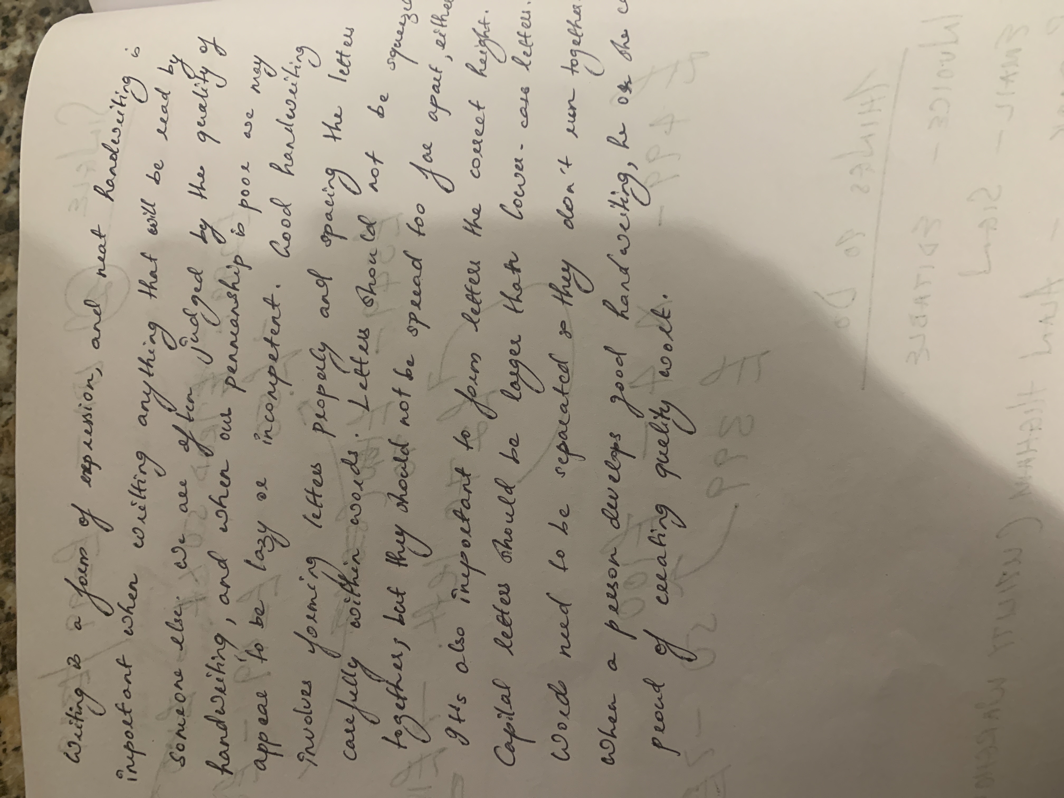 This handwriting suggests a personality that values clarity and correctness. The writer likely strives to be understood and appreciated, hence the effort to form letters well and maintain neatness. They probably have a desire to present themselves as competent and thoughtful, aligning with the sentiment that "good handwriting involves forming letters properly." The slight inconsistency suggests a balance between diligence and perhaps a touch of impatience.