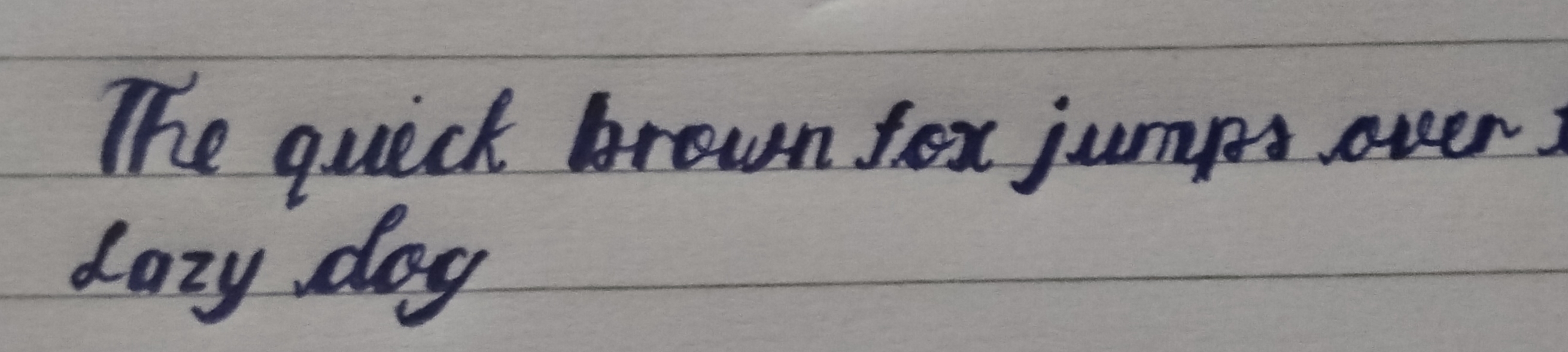 To improve the handwriting, focus on refining the consistency of letter heights and spacing between words. While the cursive style is attractive, ensure that each letter is distinct and legible. Pay particular attention to the formation of letters like 'a' and 'g', ensuring that the loops are well-defined and easily distinguishable. Practice writing slowly and deliberately, focusing on maintaining a consistent slant and pressure throughout each stroke. Over time, these adjustments will enhance the overall clarity and elegance of the handwriting.