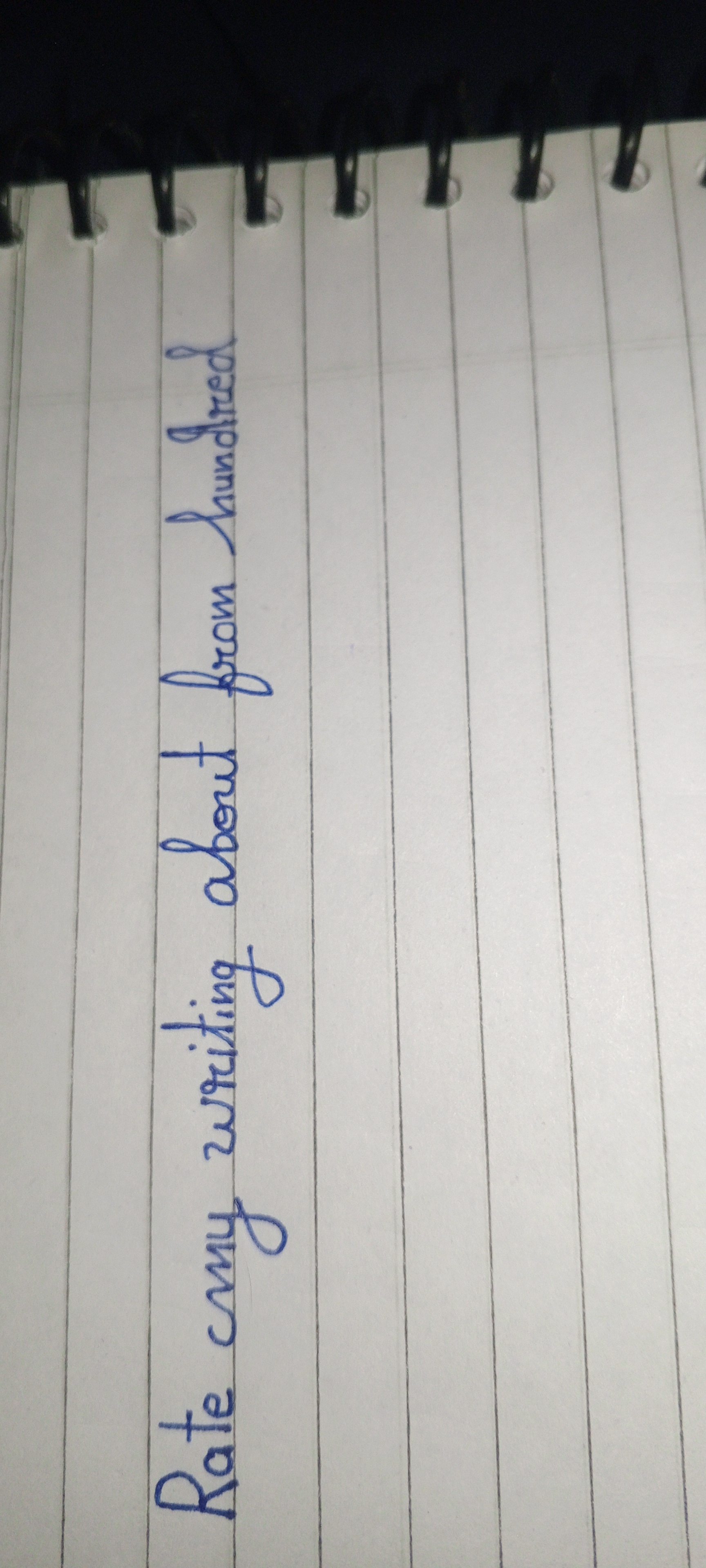 Your handwriting exhibits a neat and deliberate style. The letter formations are consistent, with a clear intention behind each stroke, as seen in the well-formed loops of the 'g' in "writing" and the 'h' in "hundred". There's a certain fluency to the writing, although it appears slightly upright, suggesting a controlled approach. The letters maintain a uniform size and spacing, which contributes to the overall legibility.