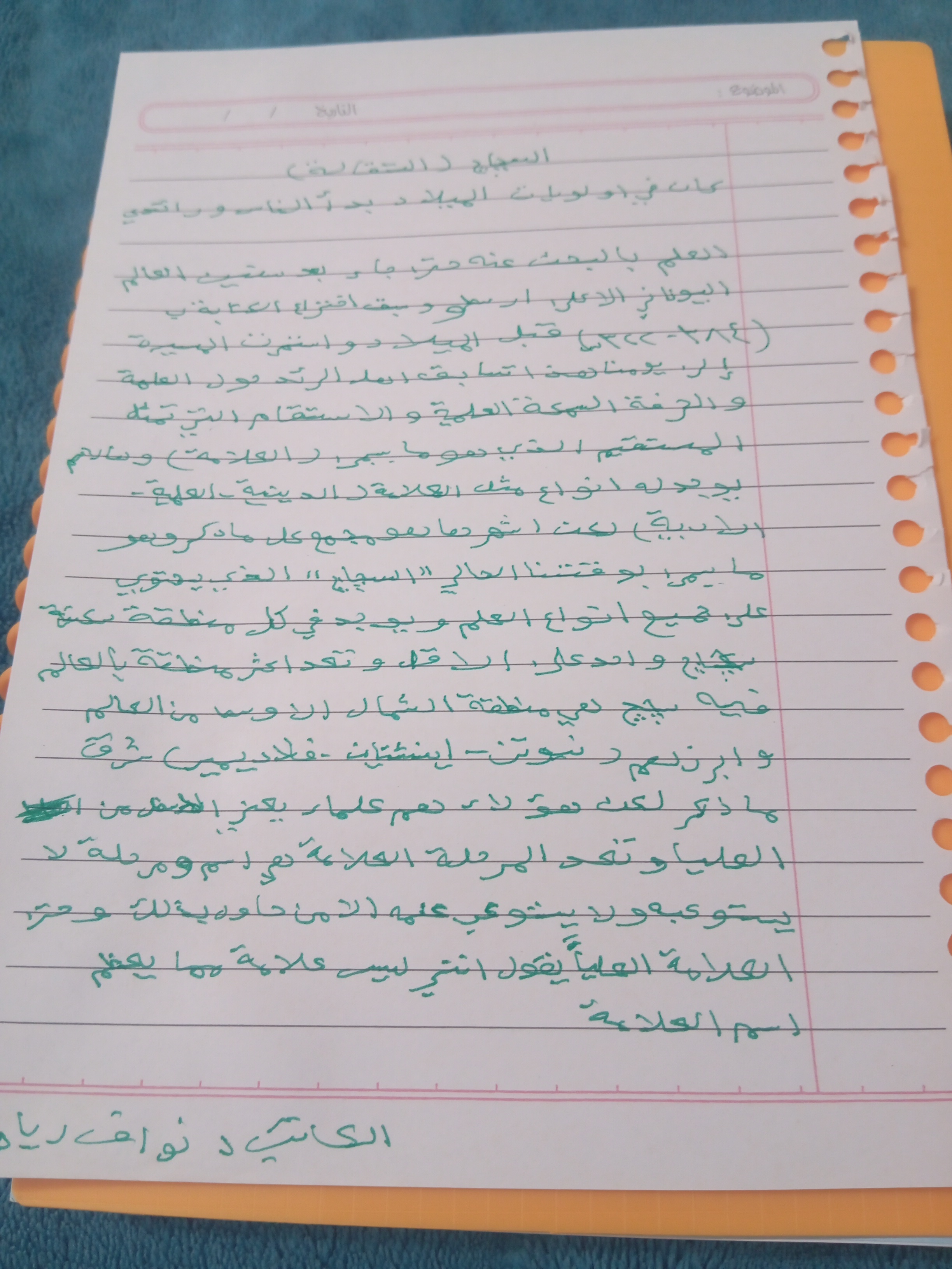 The handwriting style presents a flowing, connected script, indicative of a mind that synthesizes information readily. The letters exhibit a certain roundness, suggesting an approachable nature. Notice the elongated strokes in words like "التقالي", "العلماء", and "العلمة", these extended strokes imply a desire for thoroughness and a penchant for exploring ideas in depth.