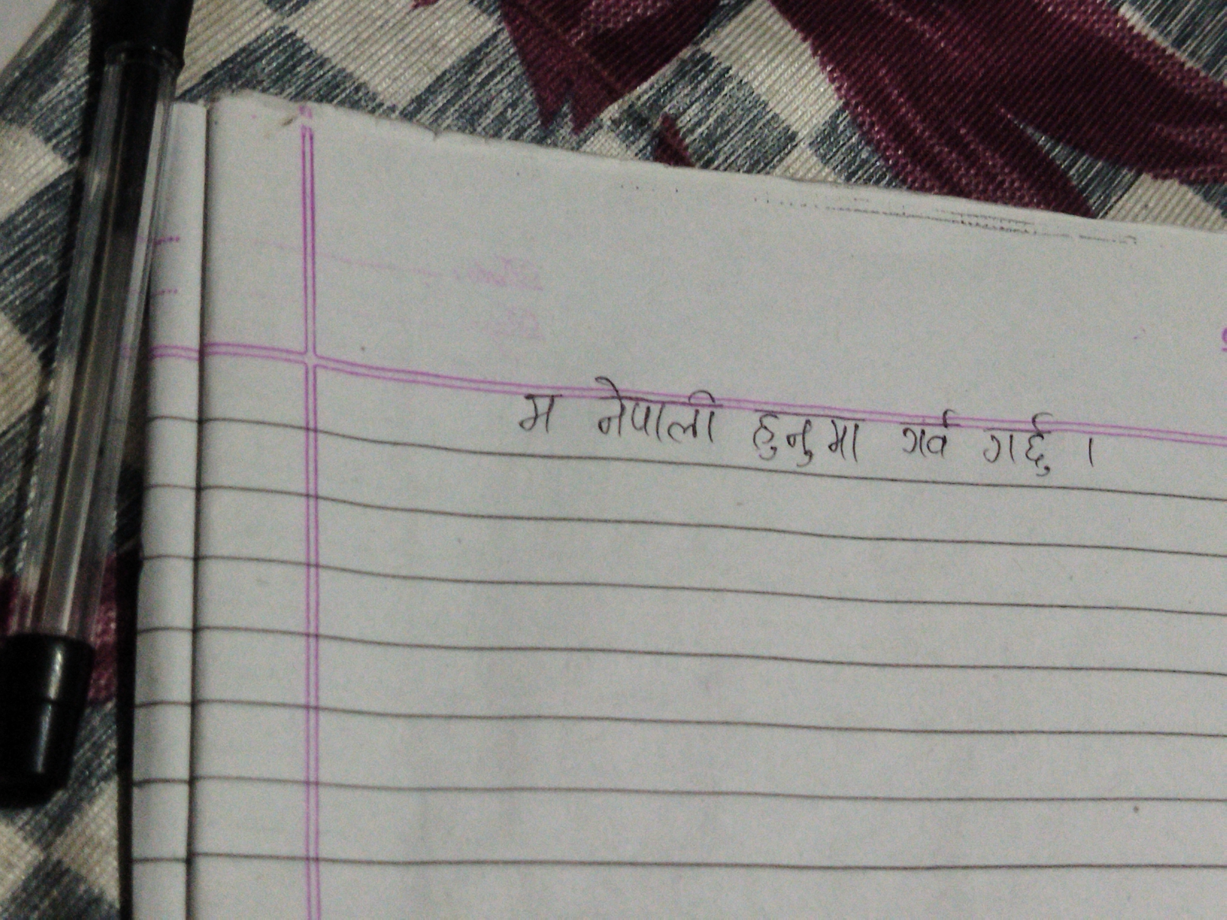 The handwriting style in the sample is characterized by its neatness and rounded forms. The characters appear well-formed, and the overall impression is one of careful execution. There is a certain uniformity in the letter heights, contributing to the organized look of the text. The phrase "म नेपाली हुनुमा गर्व गर्छु" showcases the even spacing between letters and words, which enhances readability.