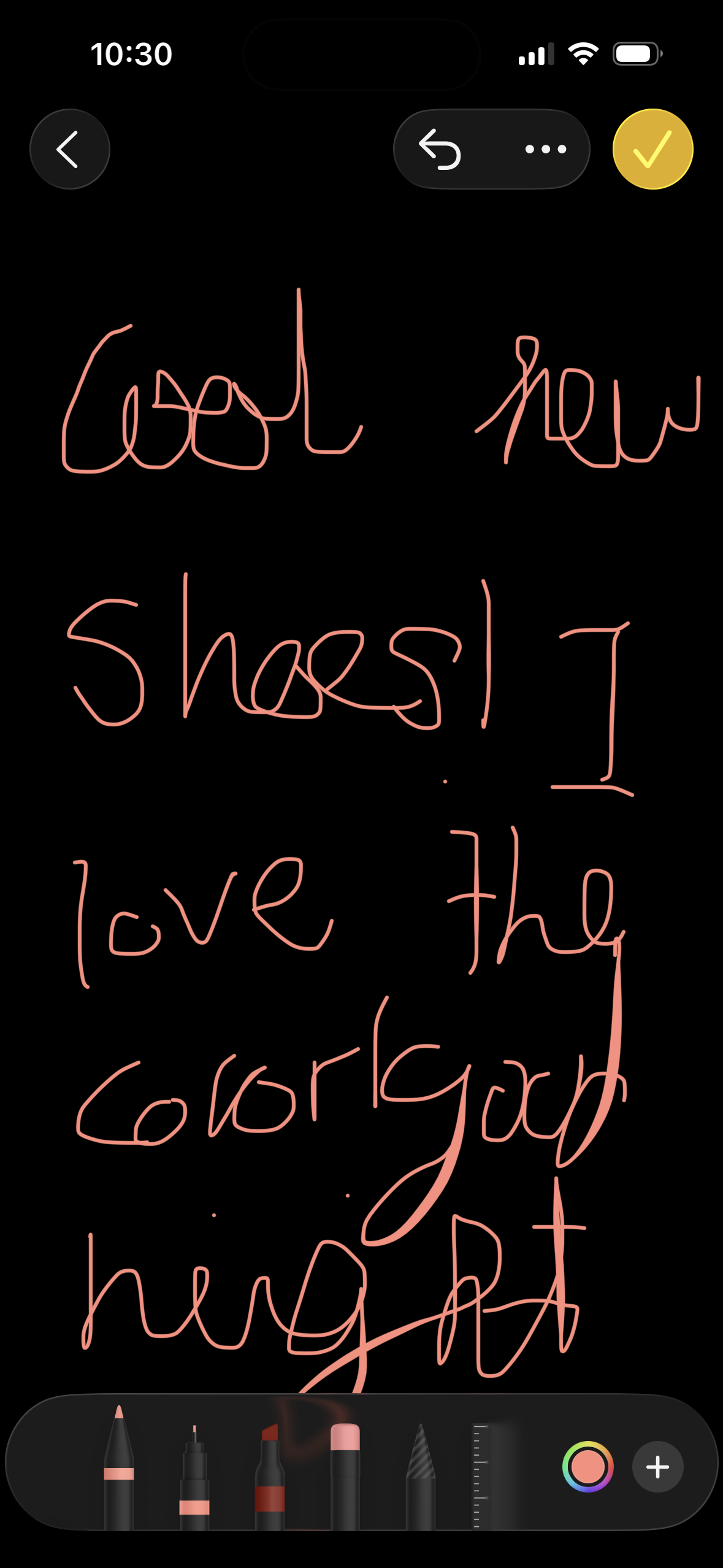The handwriting presents a casual, almost playful style. The strokes are rounded, and there's a sense of openness in the letter formations, especially in words like "cool" and "love." The letters are not perfectly uniform in size or slant, contributing to its unique charm. The handwriting is large and sprawled, making use of all the available space. Overall, it is reasonably legible but lacks some consistency.