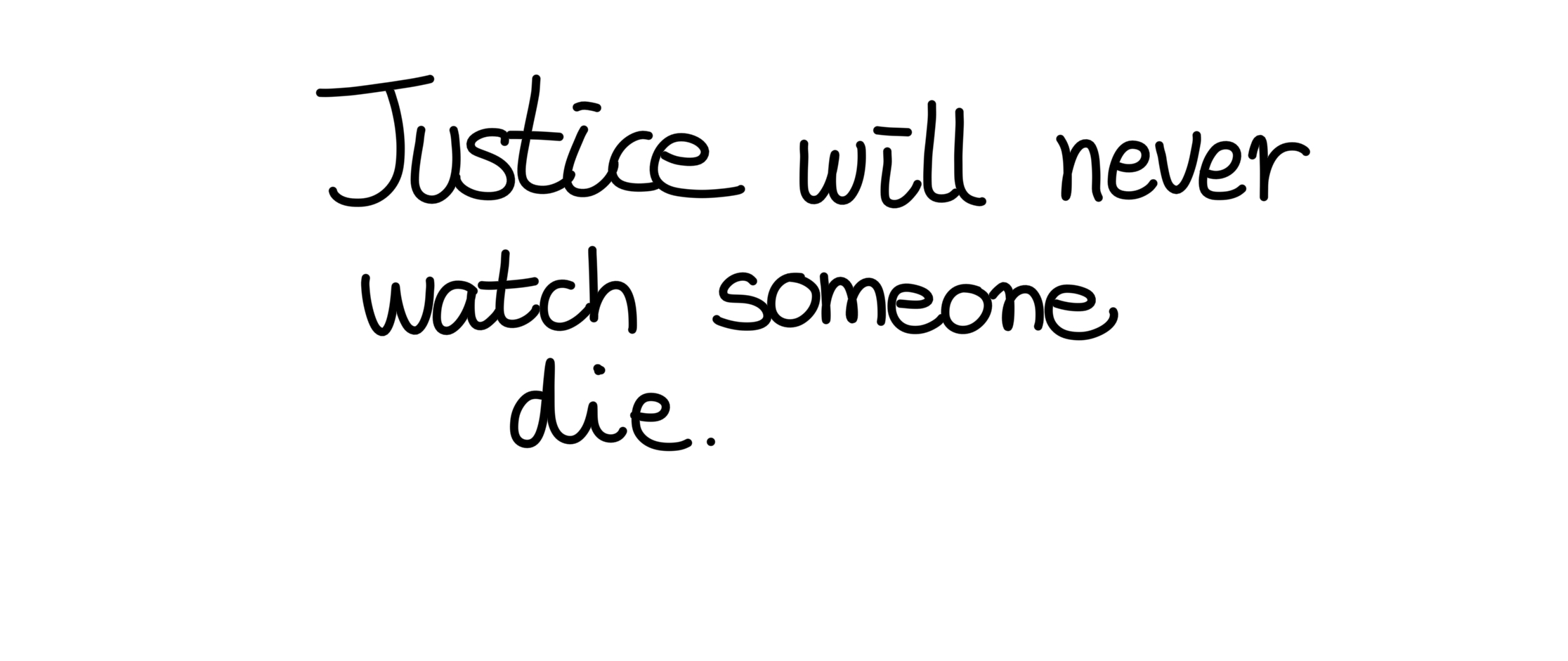 The handwriting presents a playful yet earnest style. The roundedness of the letters, seen particularly in words like "someone" and "never", suggests a gentle touch. The strokes are consistent, but the size of the letters varies slightly, adding a touch of informality. The looped 'J' in "Justice" has a sense of flourish, but overall, the handwriting maintains a level of simplicity and directness.