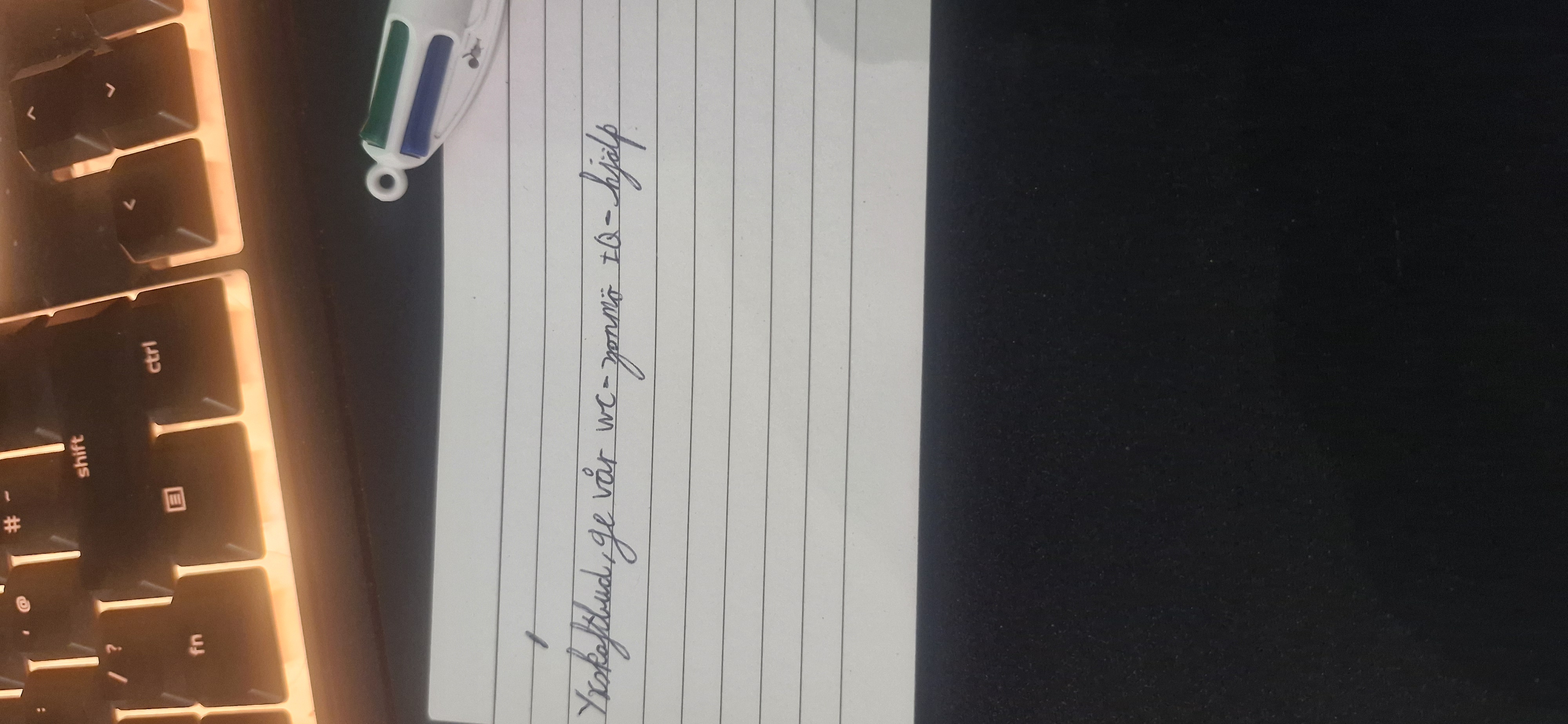 The handwriting style exhibits a distinct cursive flow, characterized by elongated ascenders and descenders, seen especially in the words "Yxskaftbud" and "hjรคlp". The connections between letters are fluid, creating a sense of momentum across the page. The slant is fairly consistent, indicating a balanced approach. There's a slight variation in letter size, adding a touch of individuality. Overall, the handwriting appears neat, but not overly rigid, suggesting a blend of order and spontaneity.