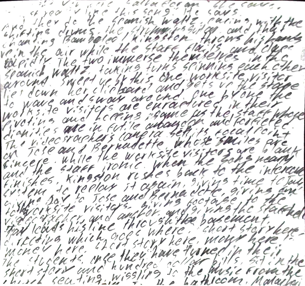 The handwriting sample reveals a script that leans towards a more cursive style, with connected letters that create a sense of flow, albeit with varying degrees of neatness. The slant is generally consistent, tilting slightly to the right, suggesting a degree of forward momentum and engagement. However, the letter formation is sometimes inconsistent; for example, some letters are fully formed and legible, while others are somewhat abbreviated or carelessly looped, particularly noticeable in words like "Kingston" and "Bernadette".