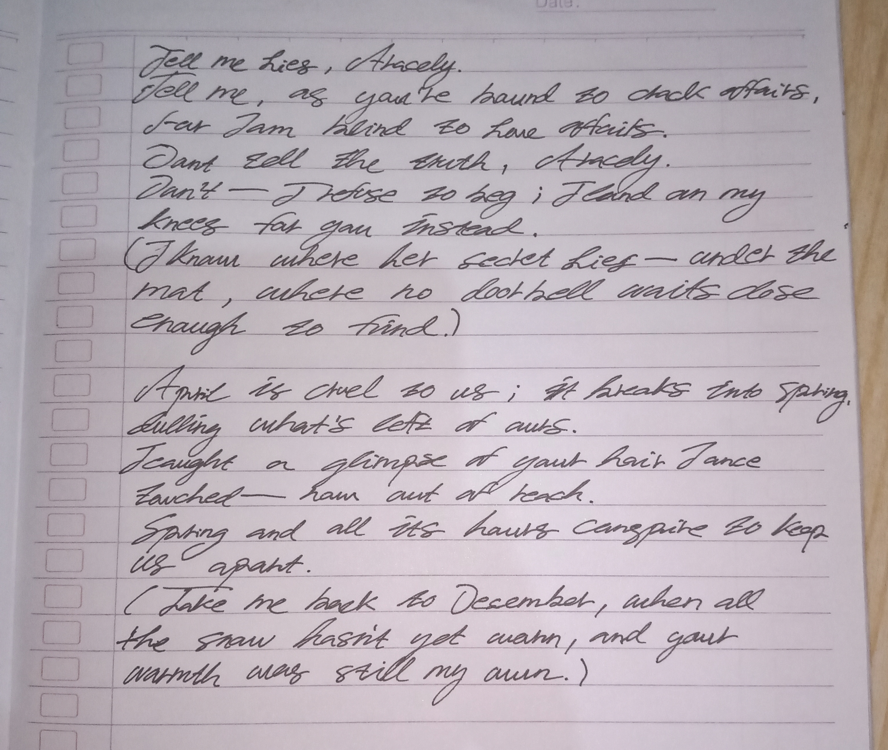 To enhance legibility, consider slowing down slightly and focusing on distinct letter formations. Practicing consistent spacing between words would also improve readability. Paying closer attention to the formation of individual letters, particularly in words that appear rushed, can bring a greater sense of clarity and precision to the writing.