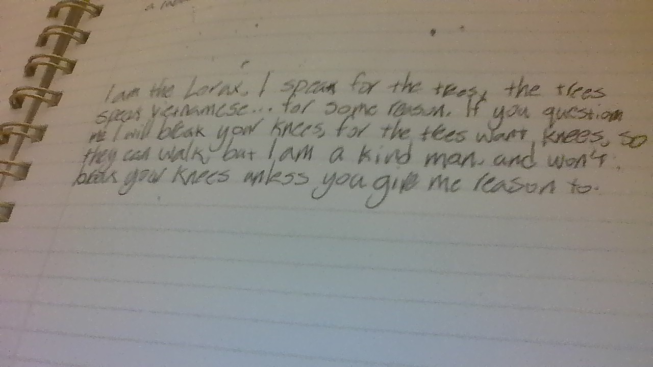 This handwriting suggests a personality that is both assertive and perhaps a little unconventional. The variation in letter size and slant might indicate adaptability, while the occasional breaks in the flow could suggest moments of hesitation or a tendency to be easily distracted. The content of the writing sample also points to a humorous, possibly sarcastic, nature with a hint of a protective streak.