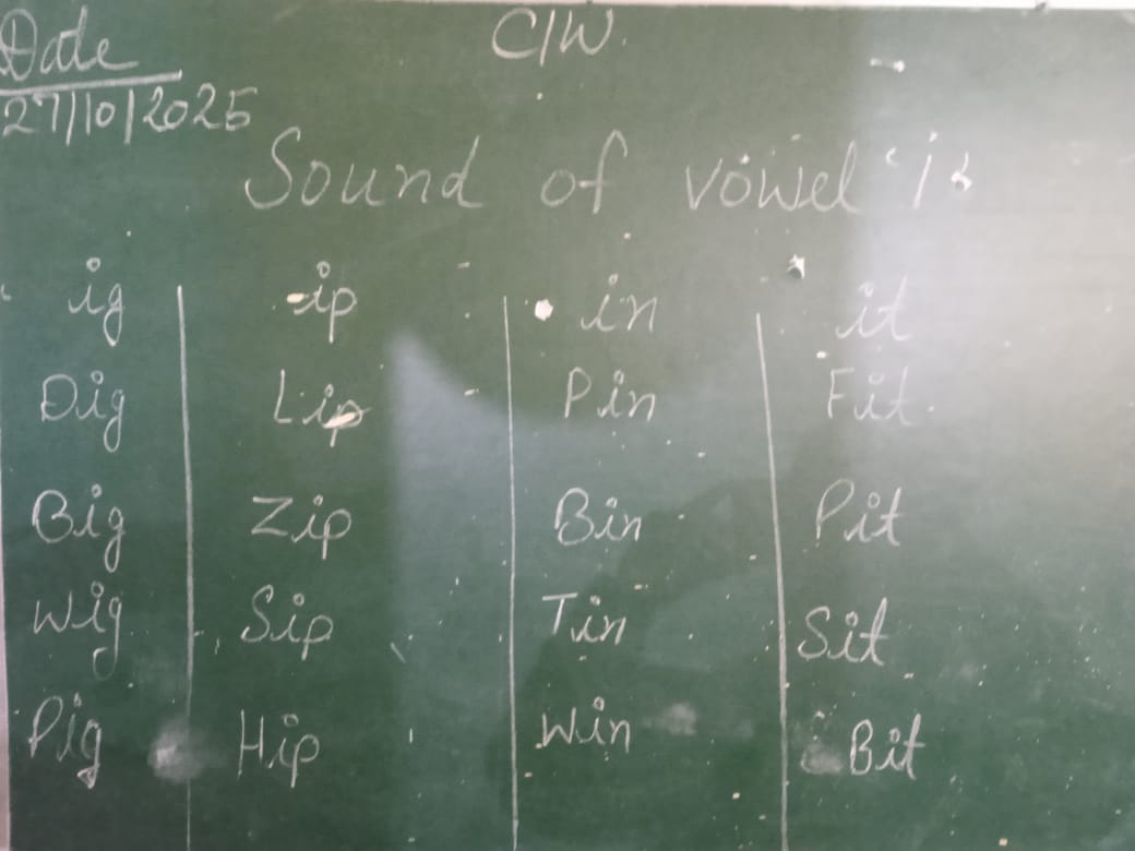 The handwriting is characterized by its neatness and deliberate strokes, evident in words like "Sound" and "vowel". There is a noticeable slant to the right, and the letter formations are generally rounded and well-formed. The consistency is fairly high, with letters maintaining a similar size and shape throughout the sample. The writing is clear and legible, making it easy to read the words "zip", "wig", and "bit".