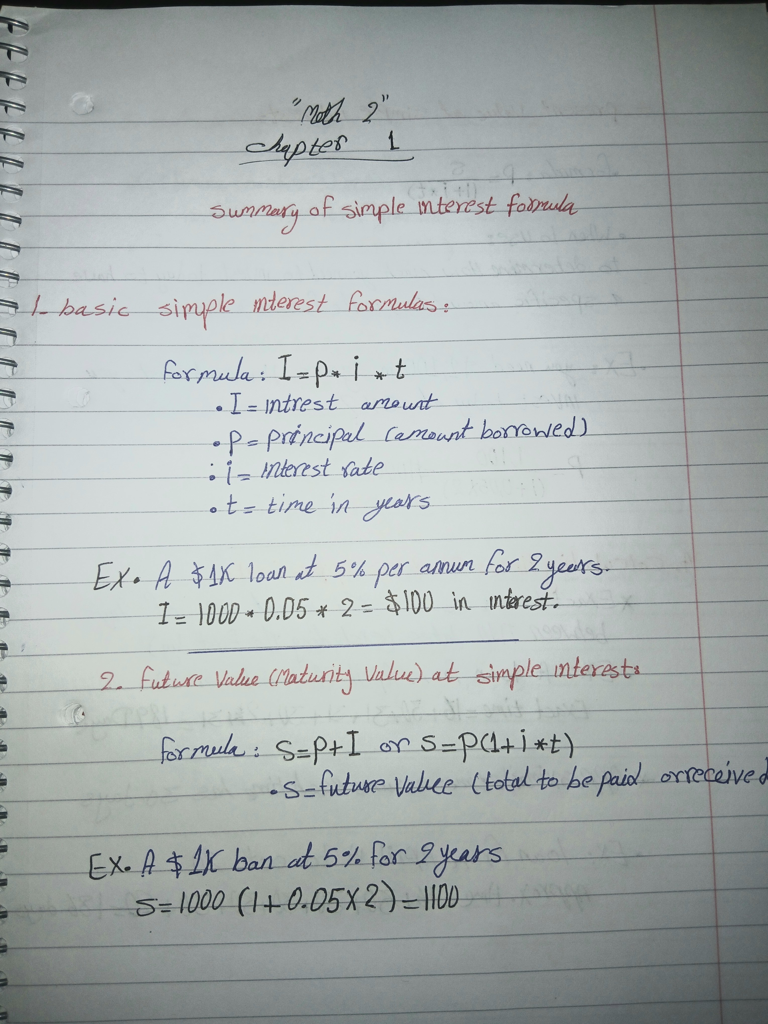 The handwriting sample displays a neat and upright style, with clear distinctions between letters. The writing is generally consistent in terms of letter size and spacing, as seen in phrases like "simple interest formula" and "future value". However, there are slight variations in letter formation, such as the occasional inconsistent slant in letters like 'y' and 'k'. The writing appears somewhat methodical and deliberate, with an emphasis on legibility, although the 'm' in "mterest" suggests a minor lapse in concentration.