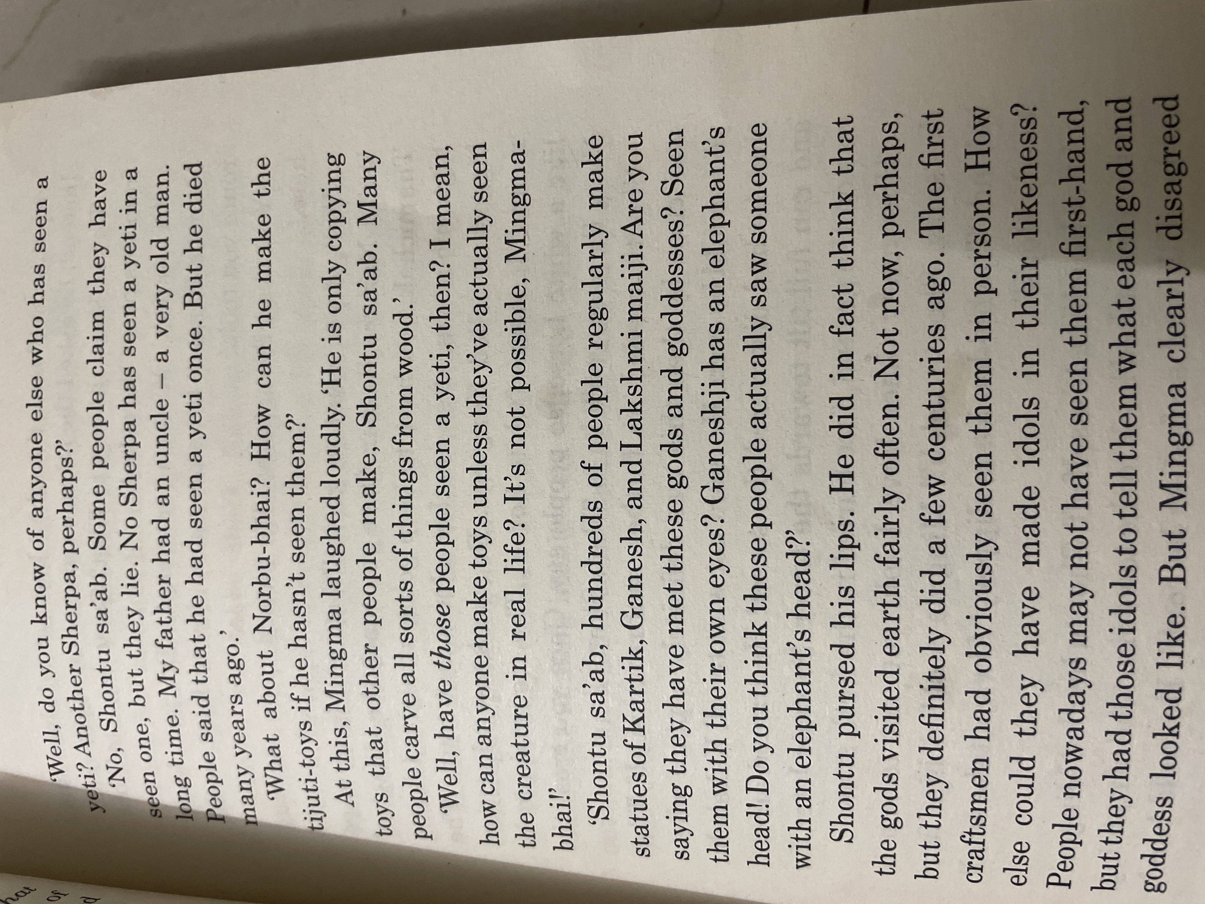 The handwriting, presented in what appears to be a standard font, exudes an air of formality and precision. Each character is carefully crafted, maintaining a consistent size and shape. The even spacing between words and lines suggests a deliberate and organized approach to writing, with words like 'Sherpa' and 'elephant's head' appearing uniform and neat.