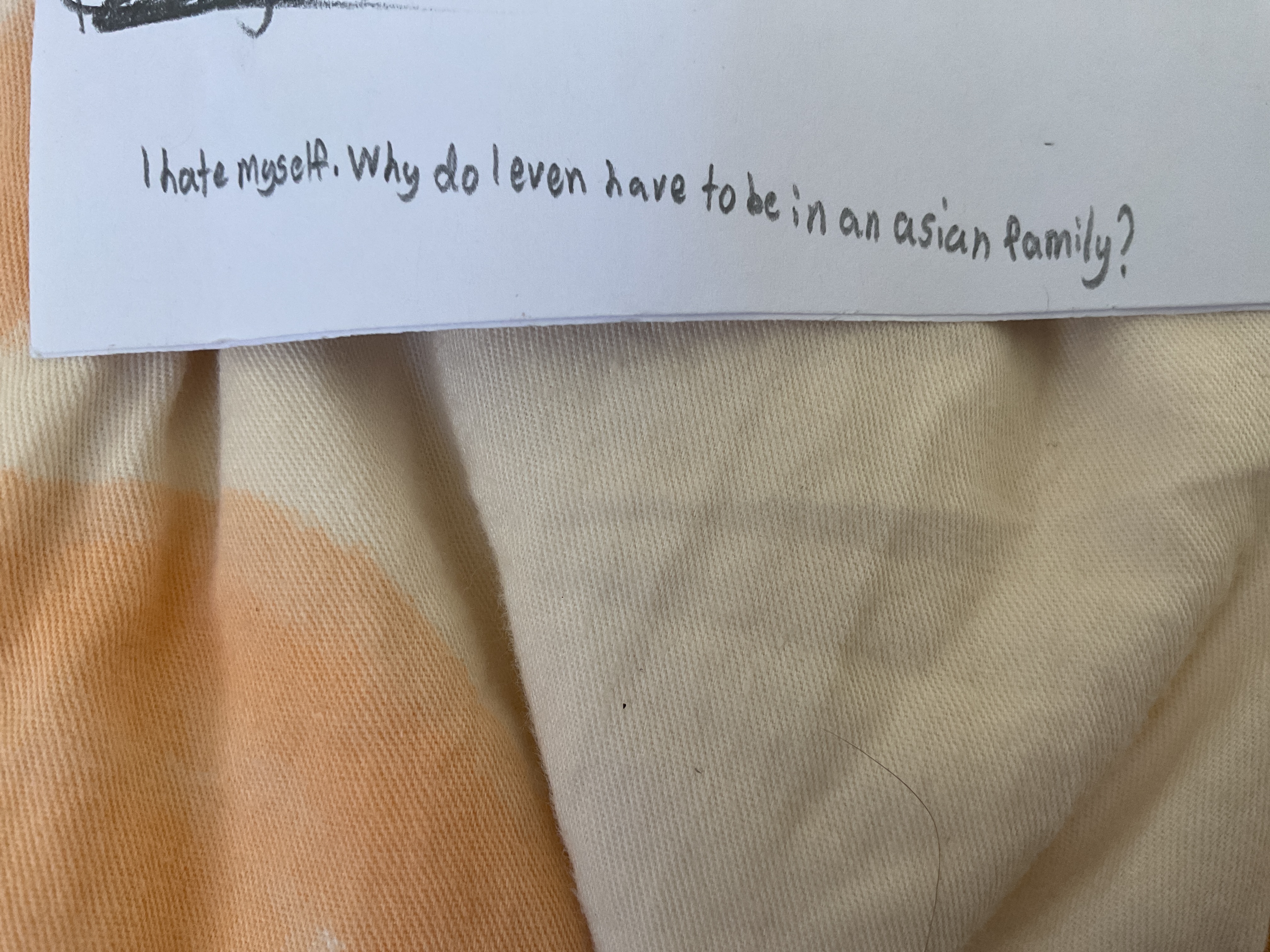 The handwriting style presented is simple and unadorned, characterized by a consistent, medium slant and size. The letters are generally rounded, with the 'm' and 'n' exhibiting a slight angularity. The writing appears somewhat labored, lacking a natural flow and rhythm. The baseline is mostly horizontal, but with a slight undulation, as seen in the phrase "I hate myself." The spacing between words is regular, although the spacing between letters within words is slightly uneven.