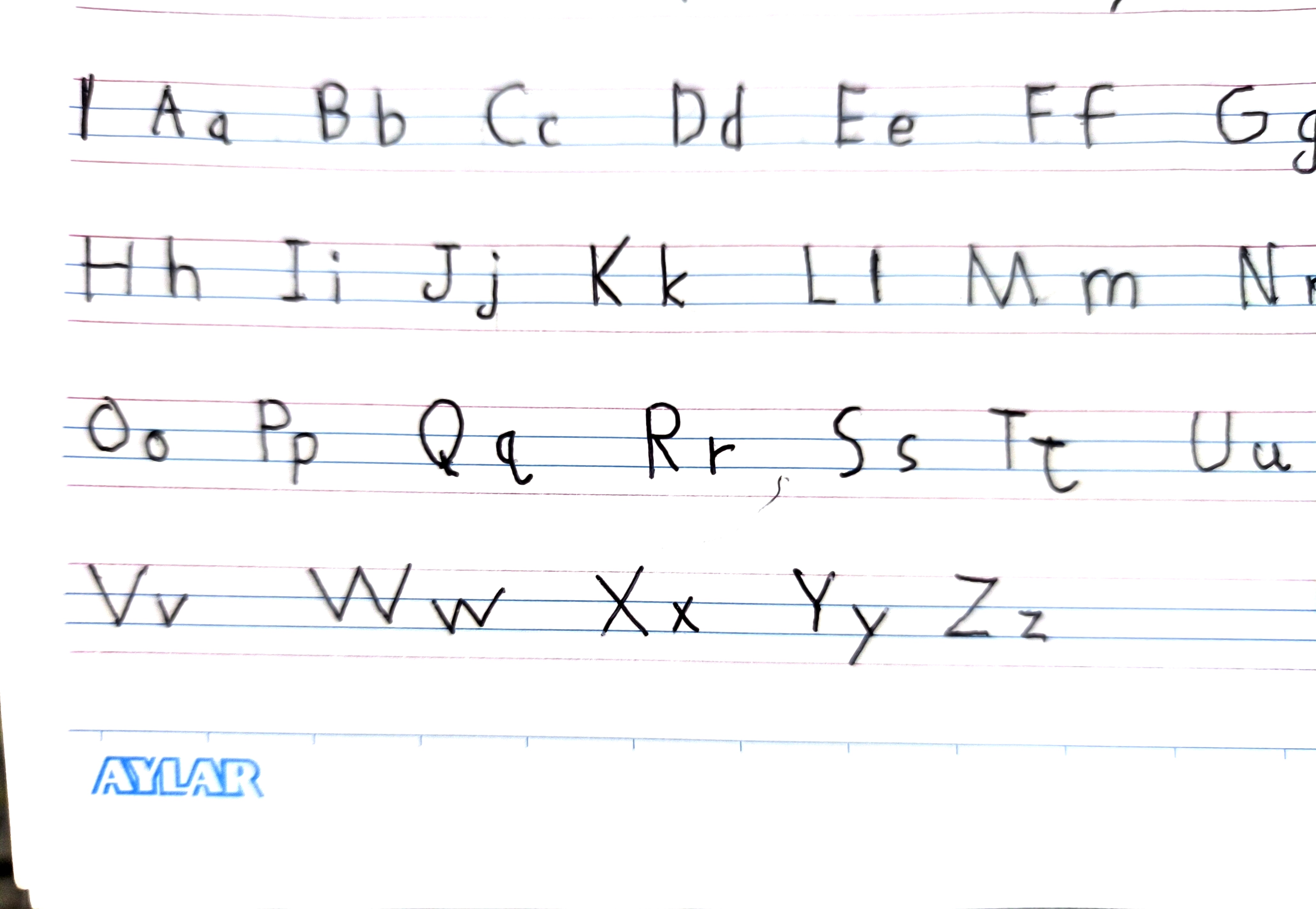 The handwriting reveals a mix of print and cursive elements, indicating a practical and adaptable approach, with opportunities to enhance consistency and fluency. Overall, the writing shows clarity and an attempt at consistency.