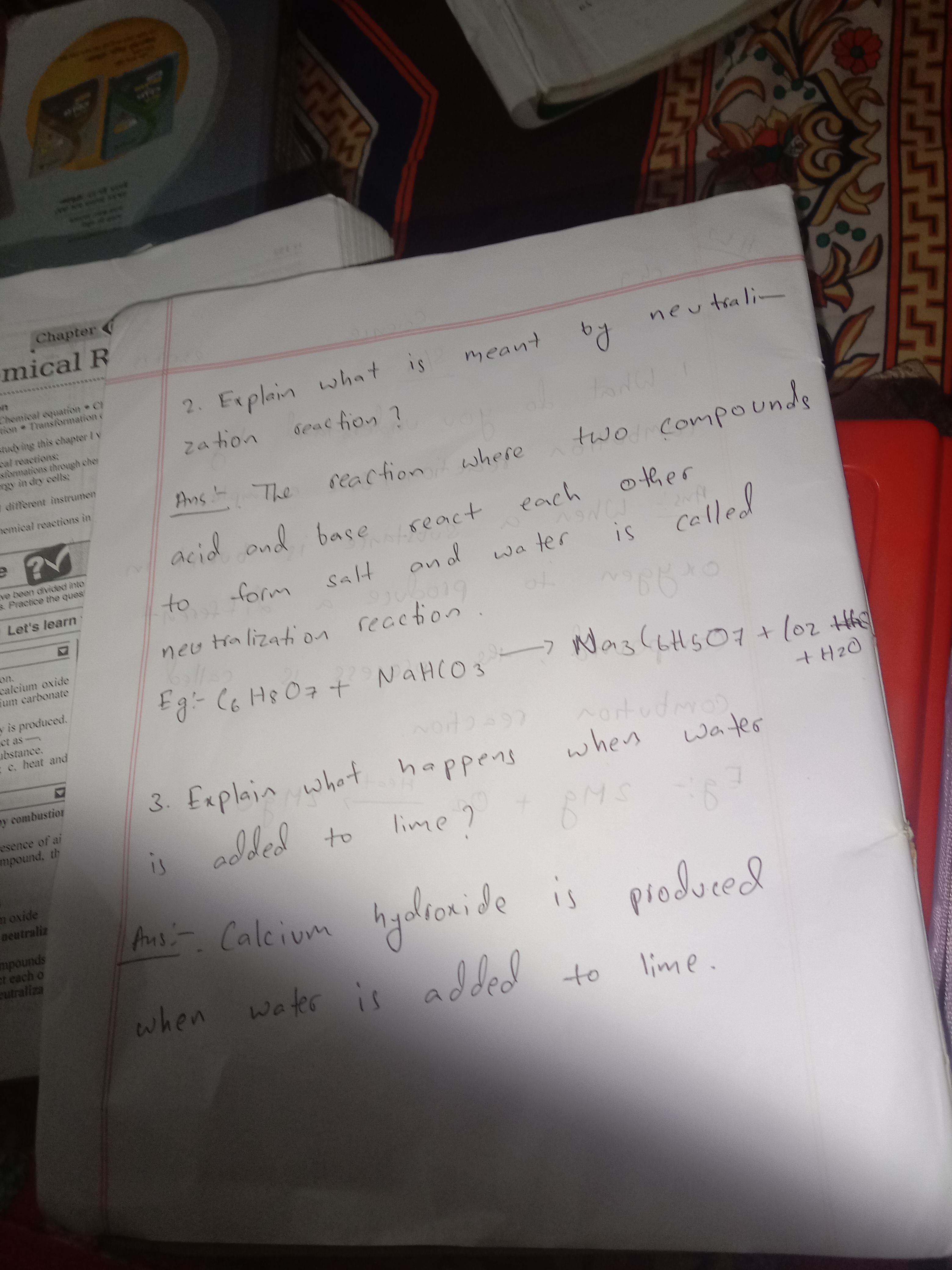 The handwriting is generally neat and legible, exhibiting a slightly rounded style with a consistent slant to the right. The letter formations are clear, and the spacing between words and lines is adequate, contributing to the overall readability. There are a few inconsistencies in letter size, but the handwriting maintains a moderate level of fluency, with some words appearing more carefully written than others, as seen in the slightly erratic sizing of the chemical formula.