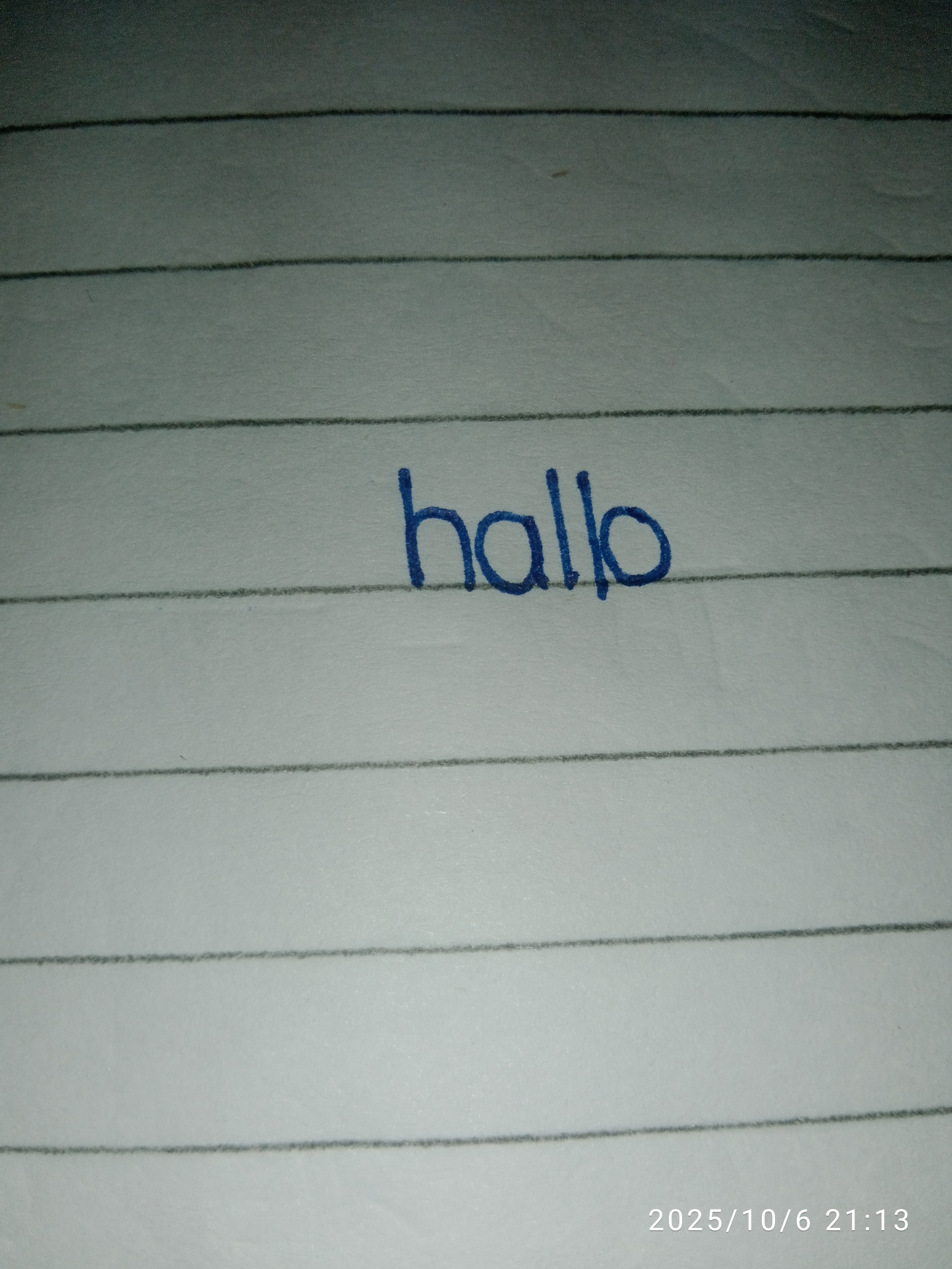 The handwriting presents as a simple, unadorned style. The lowercase letters are rounded and evenly spaced, as seen in the word "hallo". The pressure appears consistent, suggesting a steady hand. The overall impression is one of clarity and basic functionality, without elaborate flourishes or decorative elements.
