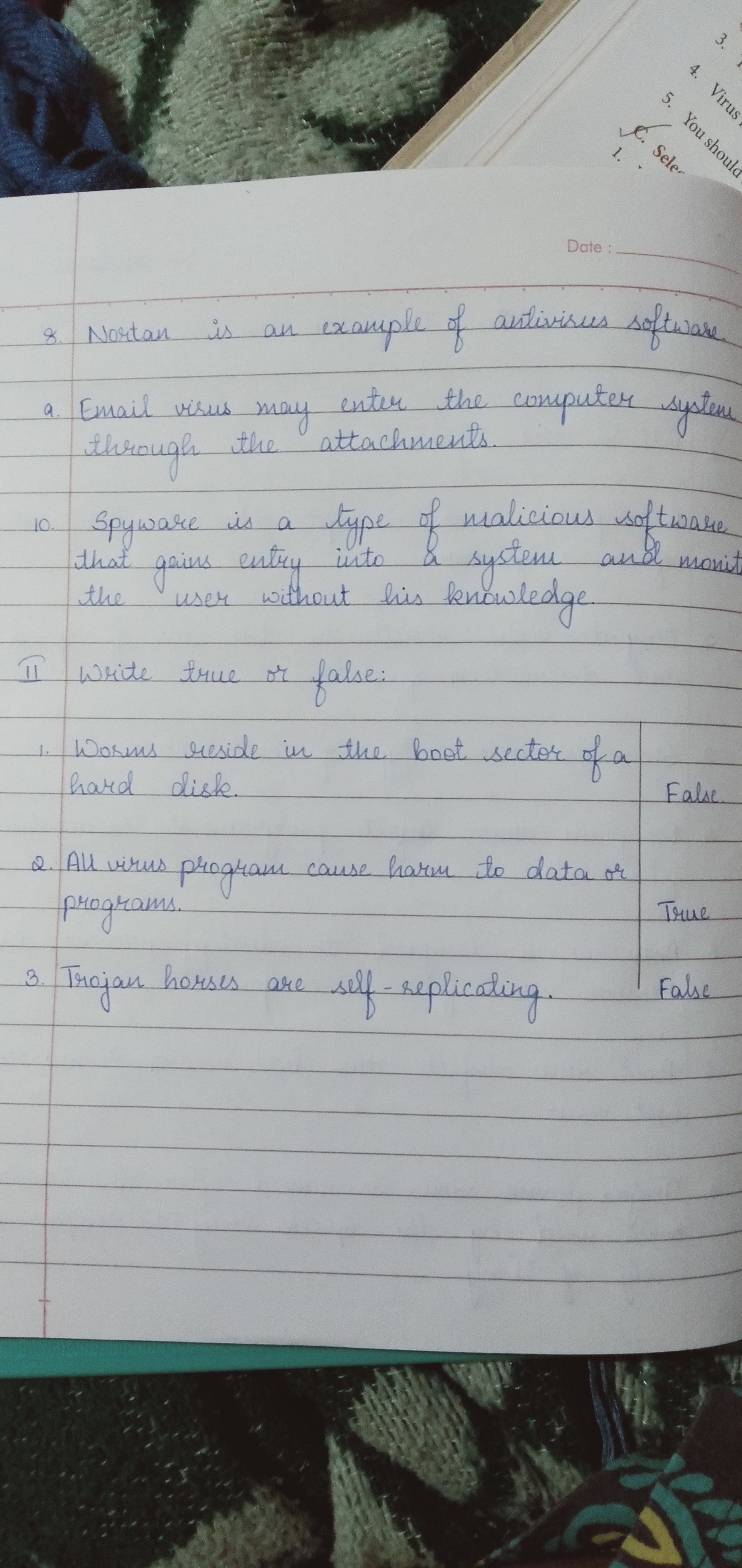 This handwriting exhibits a careful and deliberate style, with rounded letterforms such as the 'o' in 'Norton' and the 'a' in 'example'. The writing appears to be relatively uniform in size and spacing, though there is some variability in slant, with some words leaning slightly to the right. The connections between letters are generally clear, and the writing appears legible overall, though some letters, such as the 'r' in 'virus', could be formed more distinctly.
