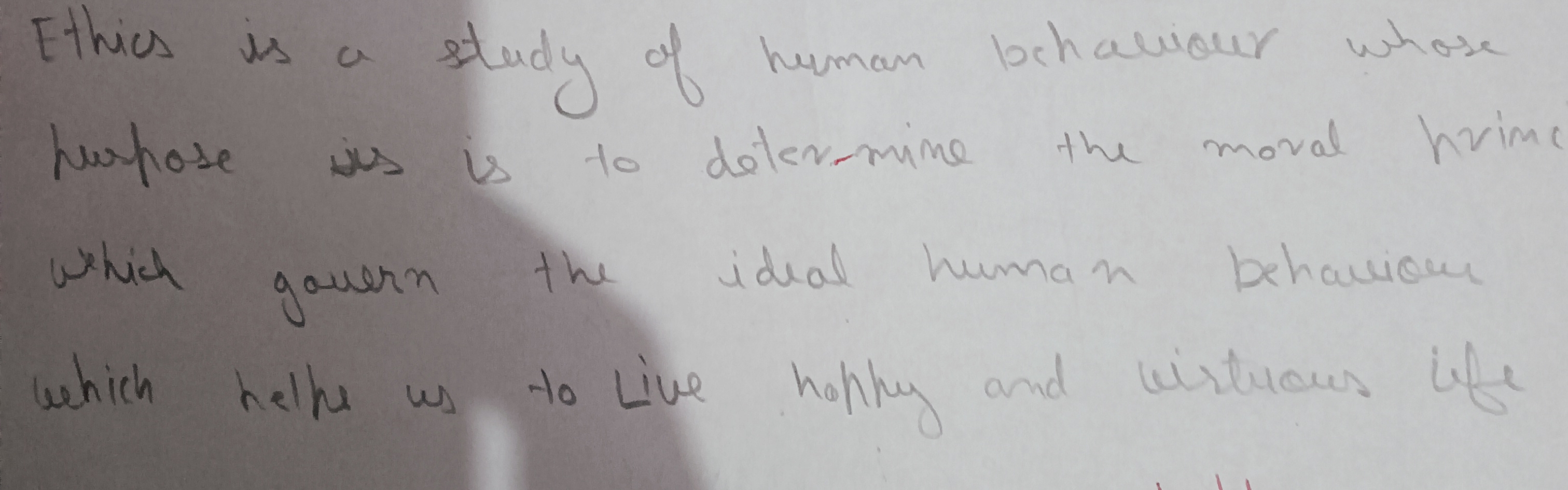 The handwriting is characterized by rounded letter forms and a gentle, slightly inconsistent slant. The size of the letters is generally uniform, contributing to overall legibility, although the lightness of the pressure used makes it a little hard to read. Words like "purpose" and "behaviour" demonstrate a deliberate and careful approach to letter formation. The spacing between words is adequate, but the lines tend to drift slightly downwards across the page.