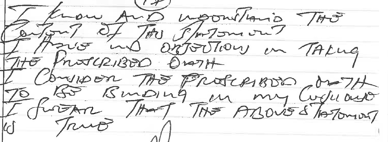 This handwriting showcases a rapid, somewhat sprawling style. Letters are often connected in a cursive manner, but with a clear tendency to simplify forms, for example the word 'AND' has a rather simplified 'A'. There is some inconsistency in letter size and slant, creating a dynamic, though sometimes less legible, impression. The baseline wavers slightly, suggesting an energetic, possibly impulsive, writing style. Some words, like 'PROSCRIBED', exhibit a strong forward slant, indicating enthusiasm or eagerness.