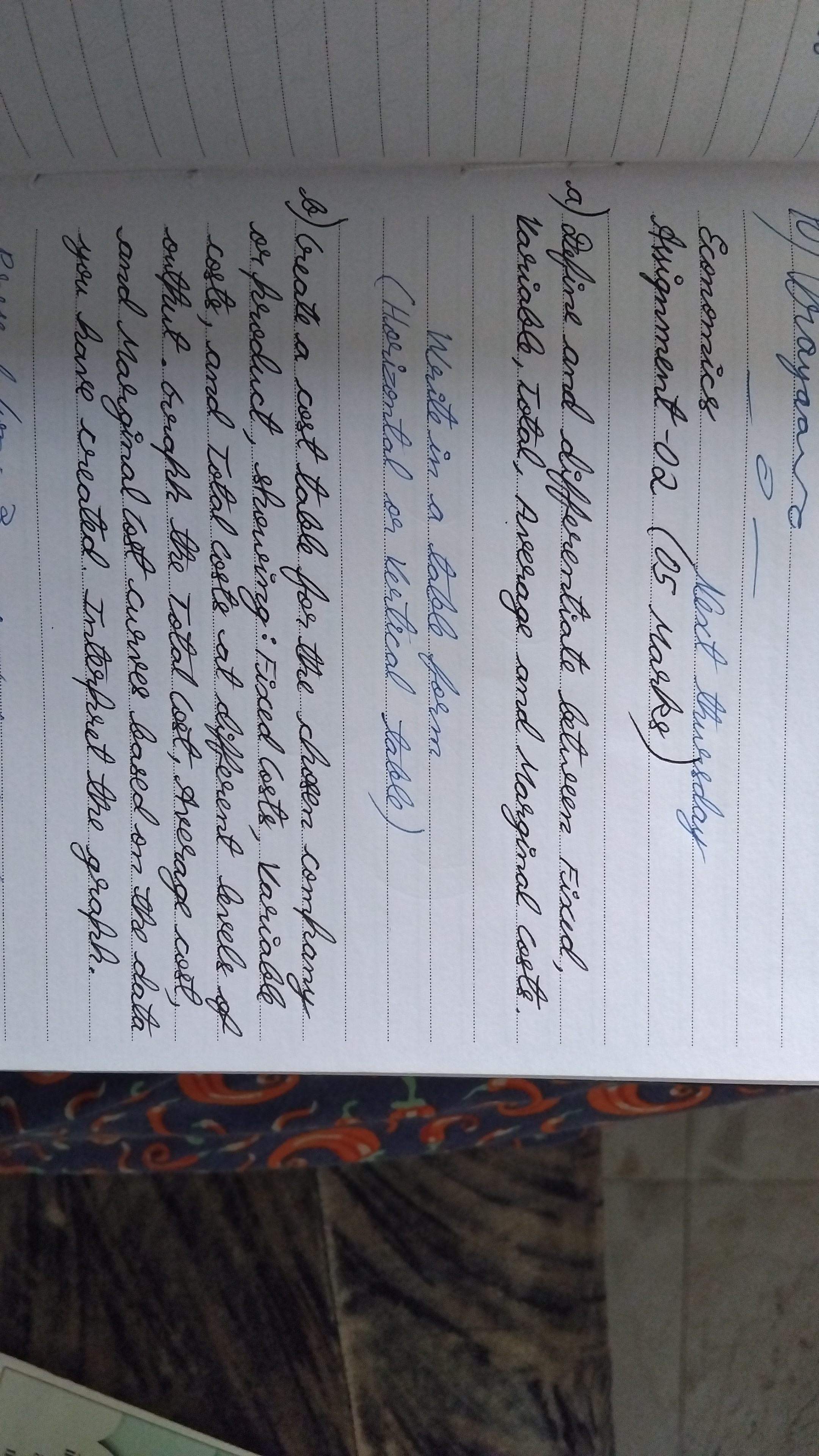 The handwriting sample displays a neat and deliberate style. The letter formations are generally well-rounded, with a consistent slant. Words are evenly spaced, contributing to the overall legibility. There's a controlled pressure applied, resulting in uniform line thickness throughout the sample. Phrases such as 'Define and differentiate' and 'Horizontal or Vertical table' are carefully crafted, indicating a focus on clarity and presentation.