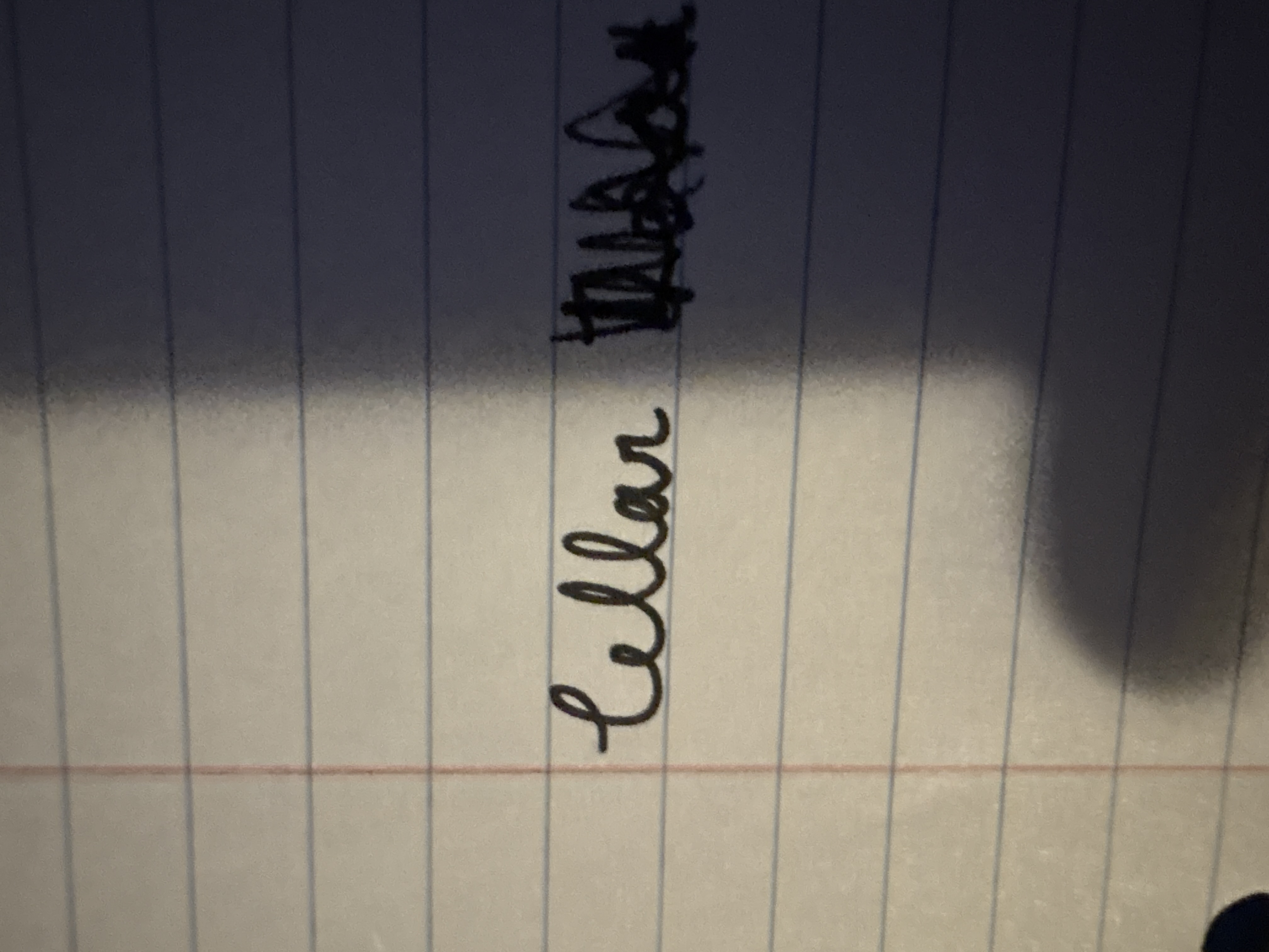 This handwriting is characterized by a pronounced slant and looping letter formations, most notably in the lower-case 'l' and 'e' of 'cellar'. The upward strokes in letters such as the 'r' are sharp and decisive, while the final word appears more rushed and less carefully formed. There is some inconsistency in the letter size and spacing.
