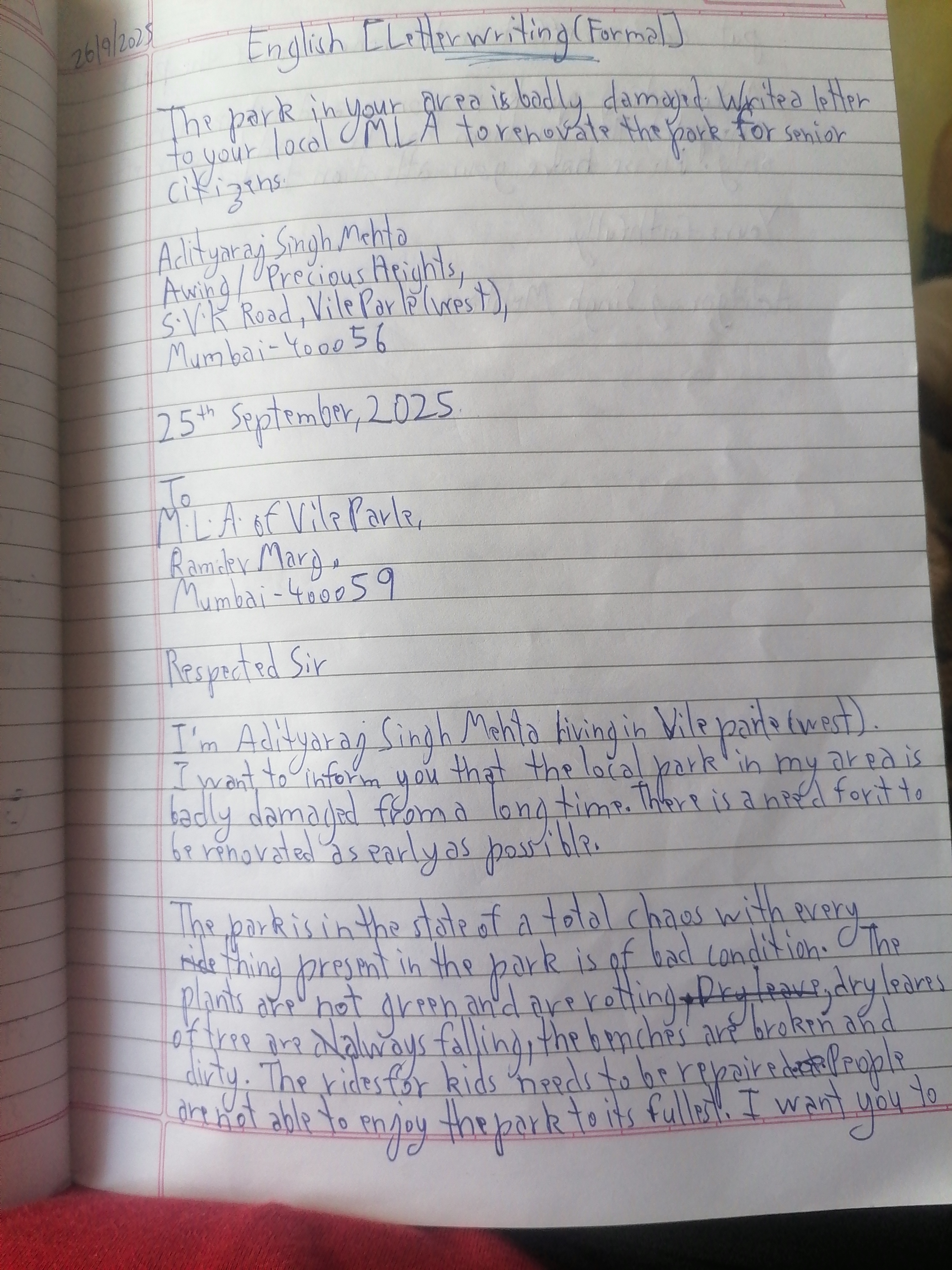 The handwriting is neat and upright, suggesting a controlled and organized approach. The letter forms are generally rounded, with consistent spacing between words. There is a slight slant to the right, and some words are written with more pressure than others. For example, 'MLA' and 'Mumbai' are written with emphasis. Overall, the handwriting is legible and demonstrates a careful attention to detail. However, there are occasional inconsistencies in letter formation, such as the 'a' and 'r', which can vary slightly throughout the sample.