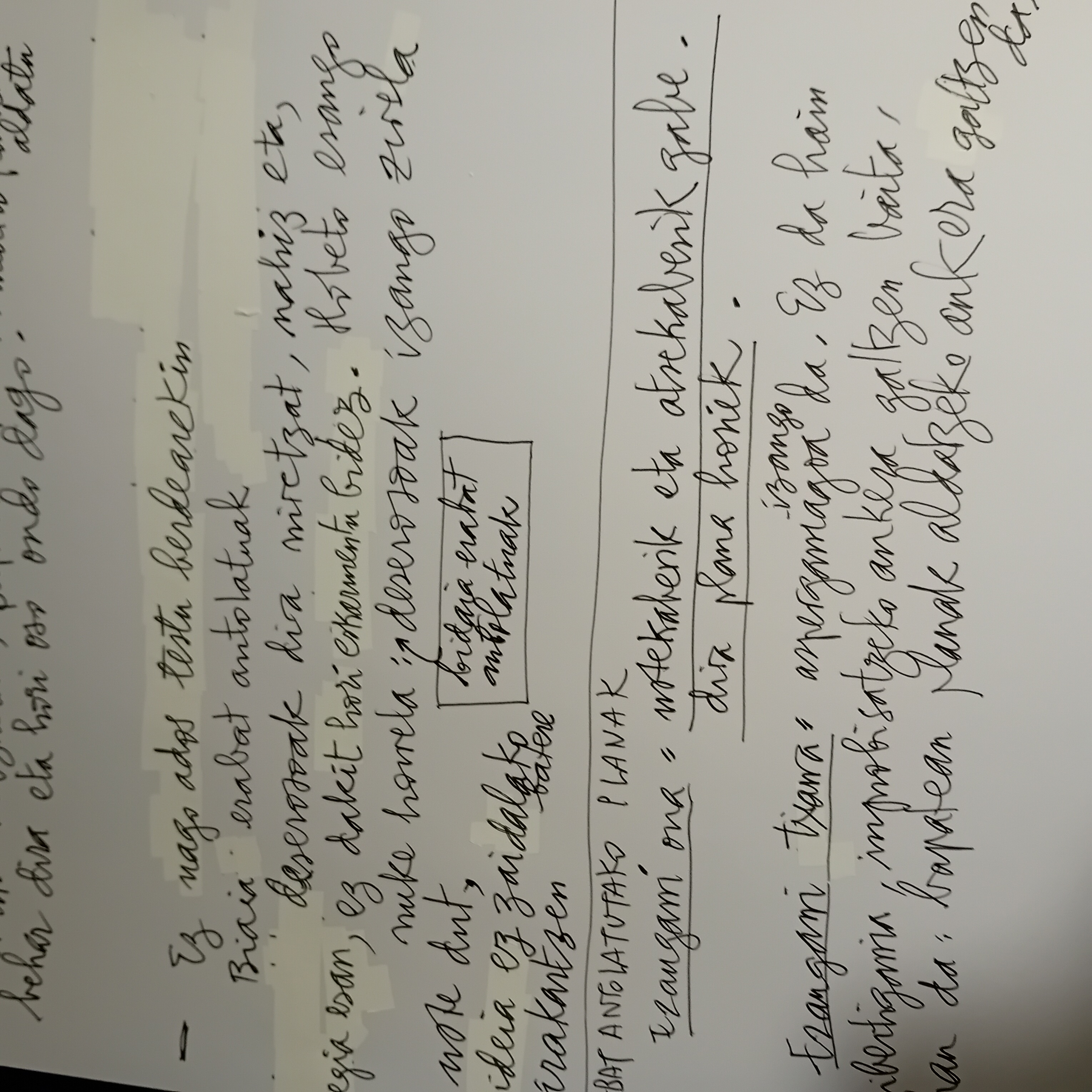 This handwriting suggests a personality that values expression and creativity, as seen in the elaborate loops and curves. The forward slant implies an eagerness and enthusiasm for new experiences. However, the inconsistent letter sizes and spacing might indicate a tendency to be somewhat impulsive or easily distracted. There is an underlying tension between planning and improvisation, suggested by phrases such as "Biaia erabat antolatuak" (Travels completely organized) and "Ezangani trawa = amergamiagono da" (Ezangani tiring = amergamiagono is). The writing style indicates an adaptable individual with a flair for the dramatic.