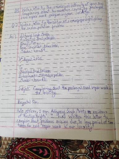 The handwriting exhibits a careful, upright style, evident in the consistent slant and fairly uniform letter sizes. The 'A' in "Adityaraj" and "August" show a distinctive formation, with a slightly rounded top. The pressure appears consistent throughout, suggesting a steady hand. While mostly legible, some words like "haccarience" (inferred as 'nuisance') and certain connections between letters could be clearer, impacting overall neatness.