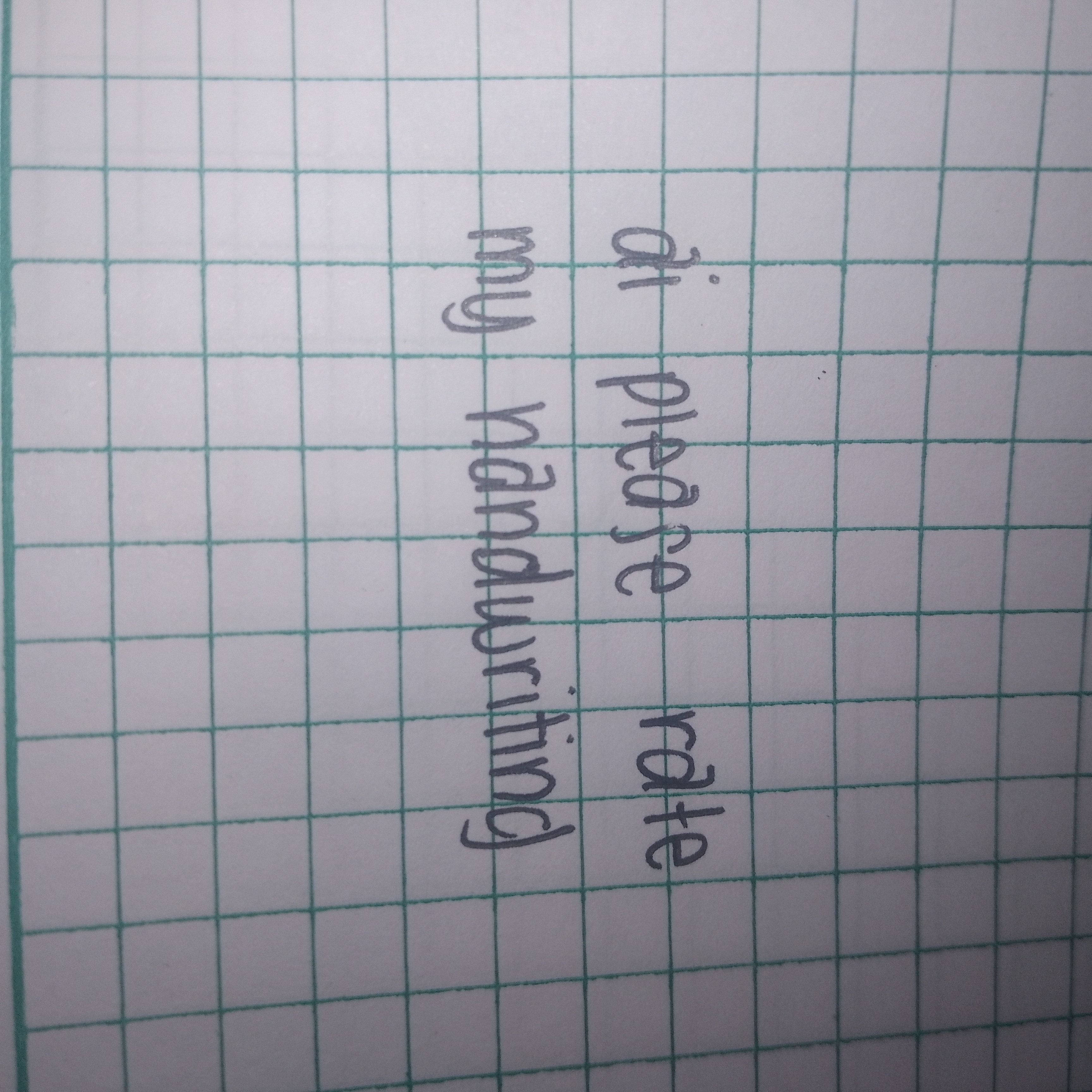 The handwriting is vertical and compact, with rounded letter forms. The words "please rate my handwriting" are written with a light touch and minimal flourishes. There's a sense of deliberate simplicity in the strokes, and the spacing is uniform. The handwriting is neat, but somewhat small and takes up little space on the page.