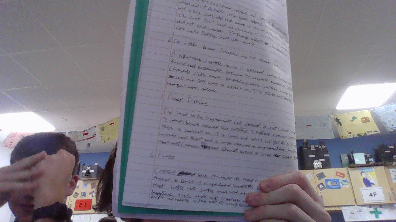 The handwriting displays a practical, efficient style. The letter formations are generally rounded, and the slant is upright, suggesting a balance between expression and control. The writing is compact, with some words closely spaced, and the lines are relatively straight, indicating a degree of organization. Some words like "Highlands" are clearly formed, while others, such as some of the shorter connecting words, are more hastily written. Overall, it appears functional and geared towards recording information quickly.
