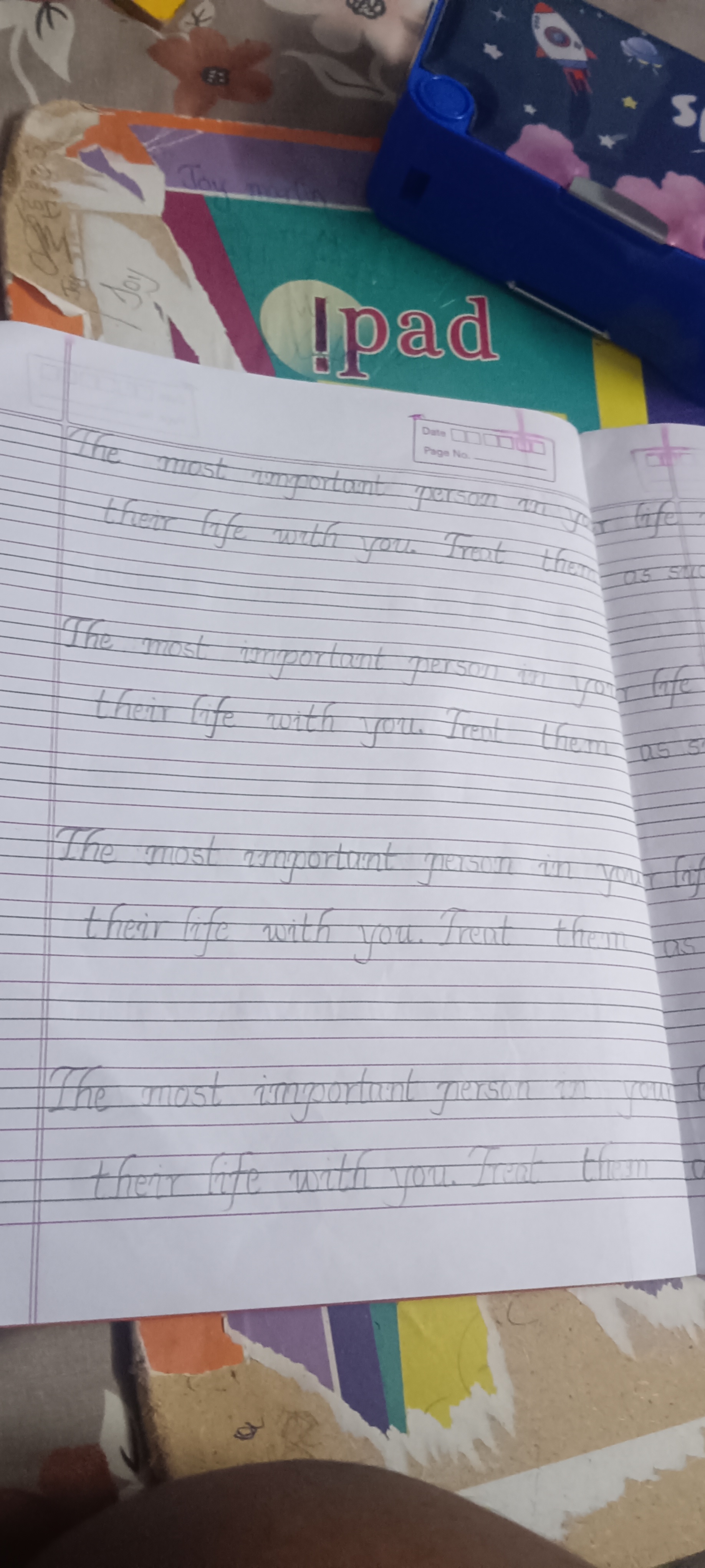 To improve the handwriting, focus on varying the pressure applied to the pen to add more depth and character. Practice making connections between letters more fluid to increase the overall rhythm of the writing. Experimenting with different letter sizes could also add expressiveness and personality to the script.