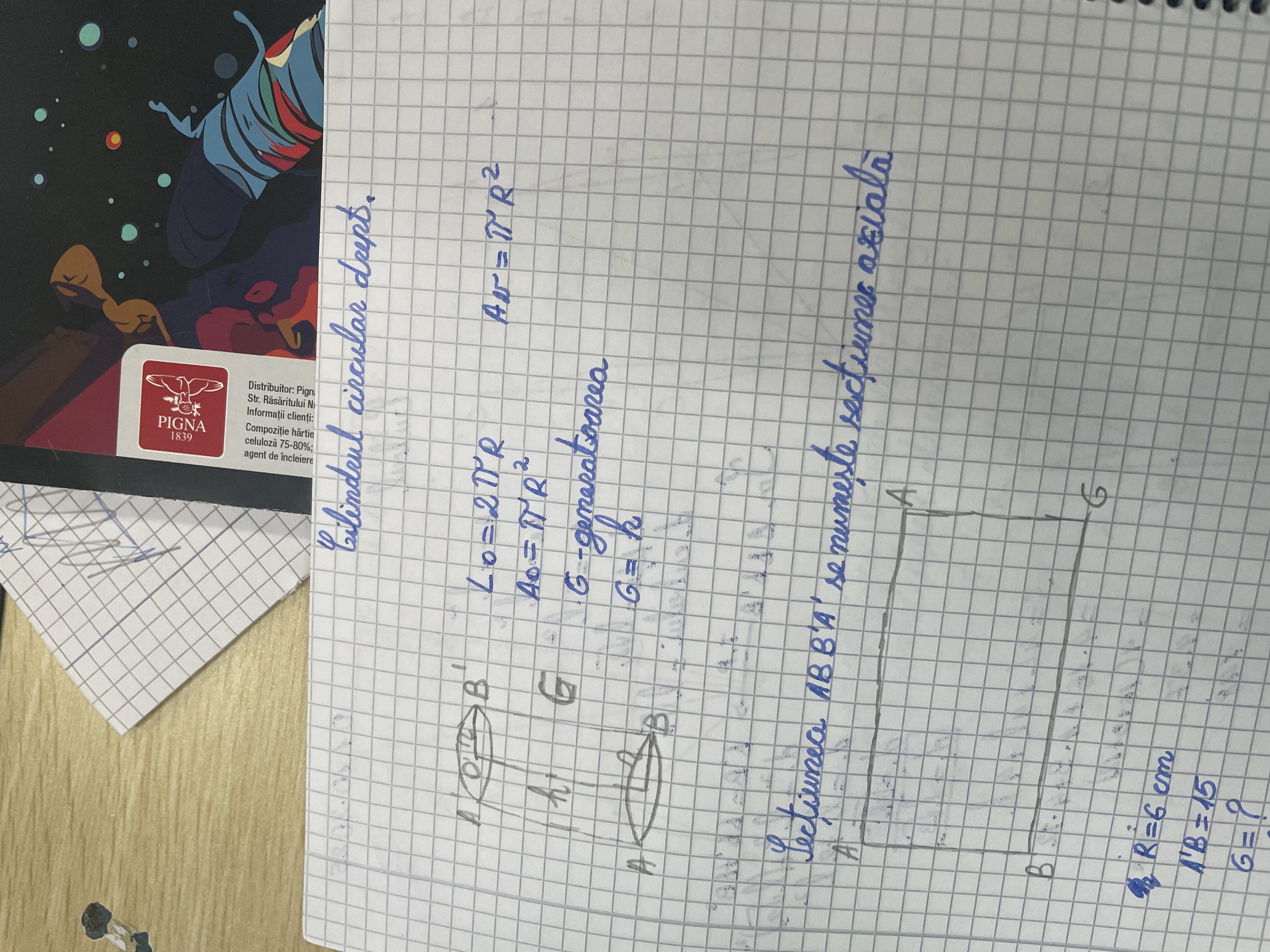 The handwriting exhibits a blend of neatness and a slight angularity. The letter formations are generally well-defined, with a clear separation between words. There is a deliberate and careful quality to the writing, especially in the mathematical equations, where precision is paramount. Notice the rounded 'Cilindeul' at the beginning and the consistent slant throughout the text. The 'R' and 'G' are distinct and show attention to detail.