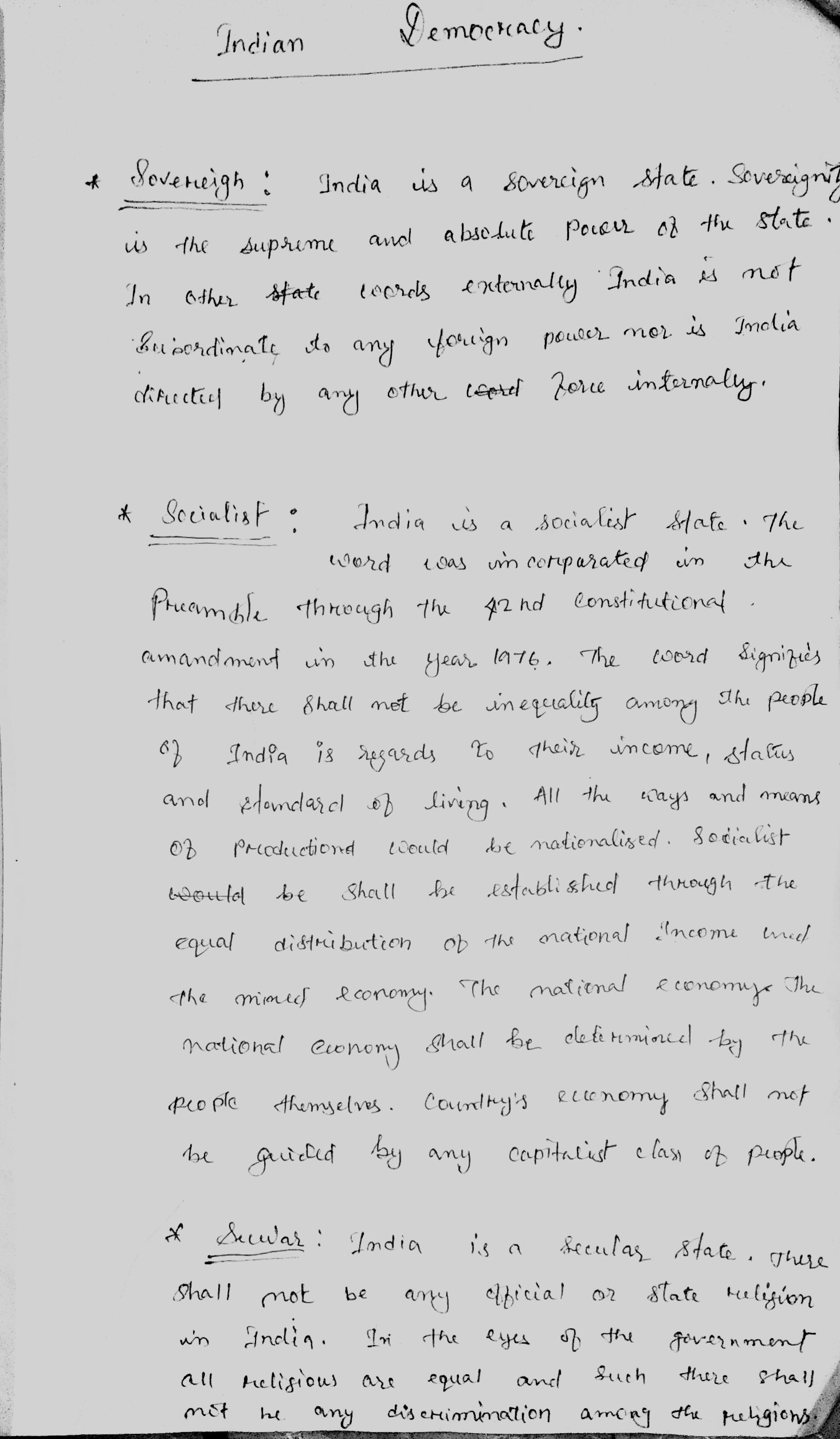 Based on this sample, the writer appears thoughtful and possibly idealistic, given the content focuses on sovereignty, socialism and secularism. The consistent slant suggests a degree of emotional control and self-possession. The occasional crowding of letters could imply a tendency to overthink or a desire to include a lot of information in a concise manner. The generally legible script suggests a desire to be understood and a respect for communication.