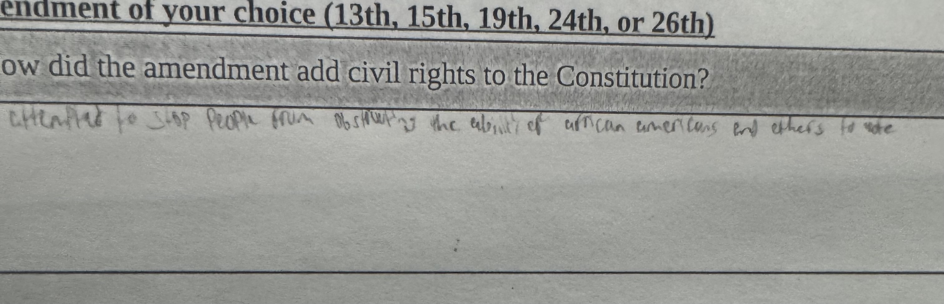 The handwriting in this sample displays a certain utilitarian charm. The script leans towards a simplified cursive, where letters are connected but with a notable absence of flourish. Words such as "amendment" and "constitution" reveal a slightly cramped structure, suggesting a possible desire to conserve space or perhaps a rapid writing pace. The letter formations are generally legible, though some inconsistencies appear, particularly in the size and slant of the letters. The overall impression is that of a practical, rather than artistic, hand.