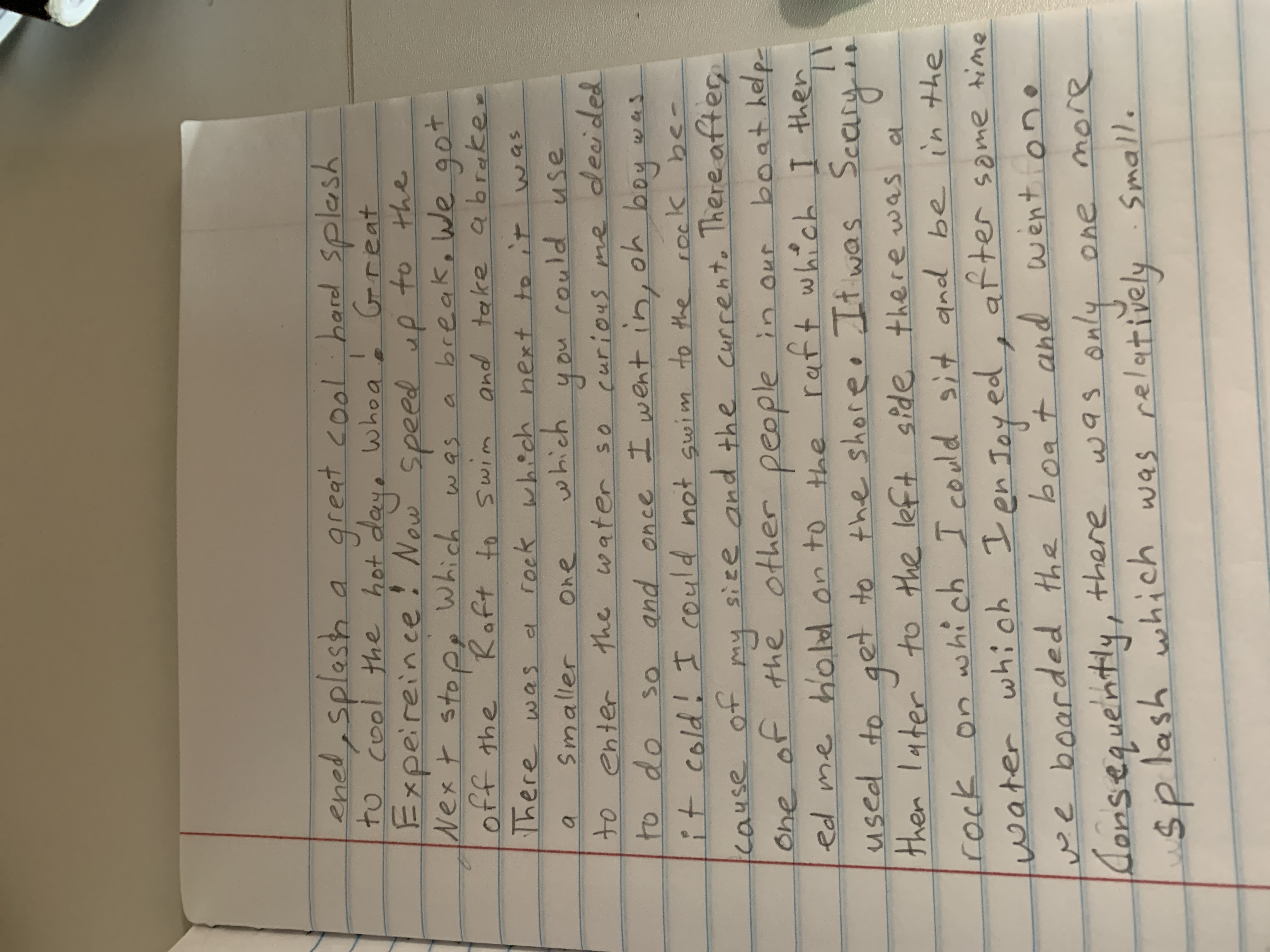 The handwriting is characterized by a simple, blocky style, evident in the formation of letters like 'a' and 'o'. The size is relatively consistent, although some letters are more compressed than others, giving a somewhat uneven appearance. There's a slight rightward slant, suggesting a forward-moving energy. The writing overall appears functional and readable, although there are some inconsistencies in spacing and letter formation. The writer appears to take their time, but there are several spelling errors, which suggest the writer may be younger, or has dyslexia.