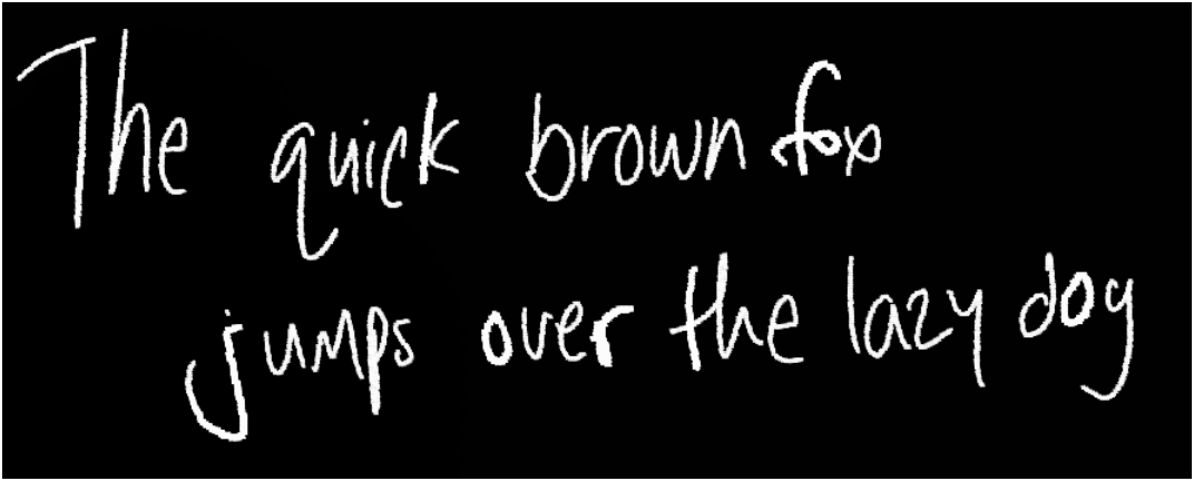 The handwriting presented exhibits a flowing, cursive style with notable variations in letter size and slant. The ascenders and descenders are moderately elongated, lending a sense of openness. Some letters, like the 'T' in 'The' and the 'f' in 'fox' show a pronounced upper loop, while others are more compact. The spacing between words is generally consistent, contributing to overall readability, but the formation of individual letters is somewhat inconsistent, for example the 'o' and 'w' are joined up in the word 'brown'.