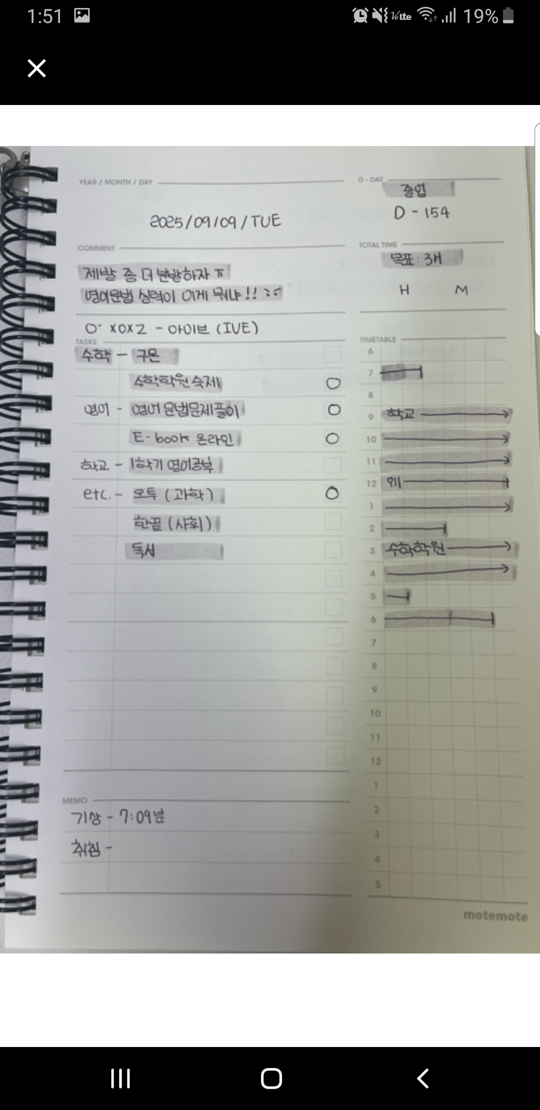 The handwriting is upright and neat, demonstrating a focus on clarity and organization. The letterforms are carefully constructed, as seen in "μν - ꡬμ¨" and "μμ΄ - μμ΄ λ¬Έλ²λ¬Έμ νμ΄", with a consistent slant throughout the text. The spacing between words and lines is well-maintained, contributing to the overall legibility of the handwriting. The writer demonstrates attention to detail and a structured approach to writing, making the text easy to read and follow.