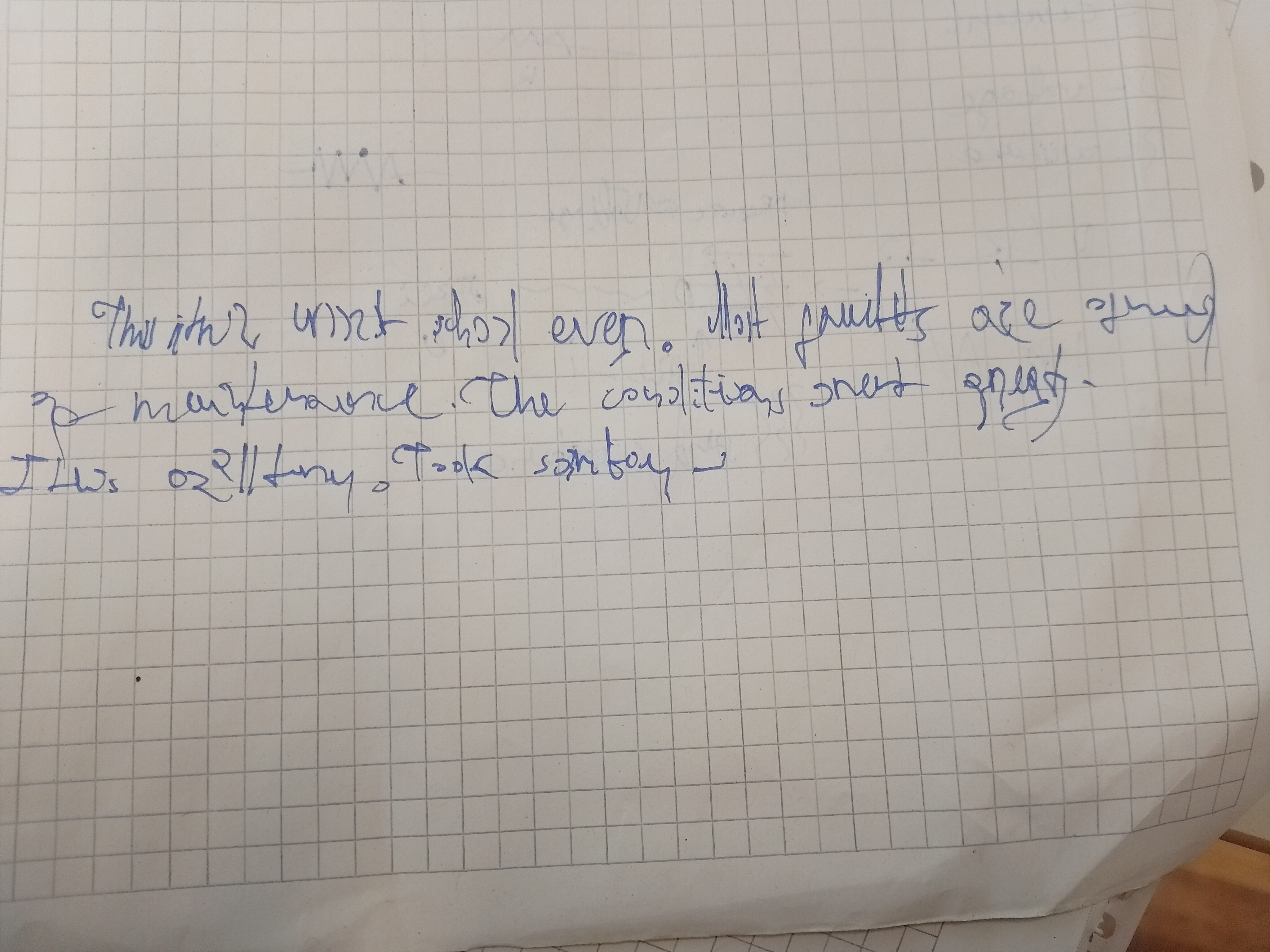 The handwriting is characterized by its somewhat rushed and uneven appearance. The letterforms are rounded and connected, exhibiting a cursive style, although with some inconsistencies in letter height and spacing. Words like "maintenance" and "conditions" appear to be written with a certain speed, leading to some loss of clarity. There is a noticeable slant to the right, and the baseline is not perfectly straight, giving the impression of informality.