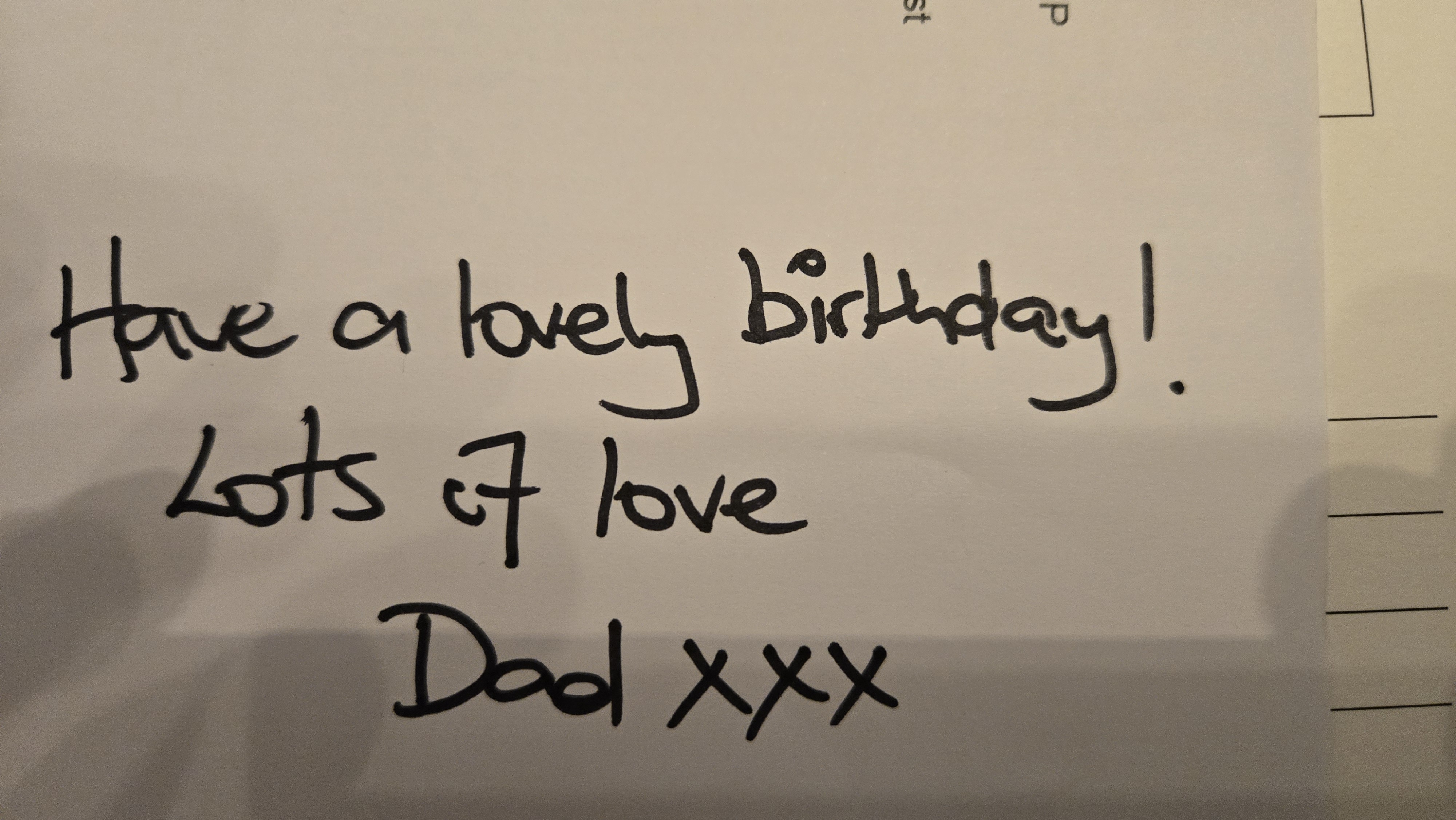 This handwriting suggests a personality that is warm, caring, and affectionate, as echoed by the words "lovely" and "love". The clarity and legibility of the writing also imply a desire to communicate clearly and effectively. The relaxed, slightly rounded forms could indicate a friendly and approachable nature, someone who values connection and is comfortable expressing their feelings. The generous spacing might suggest a person who appreciates personal space, both their own and others'.