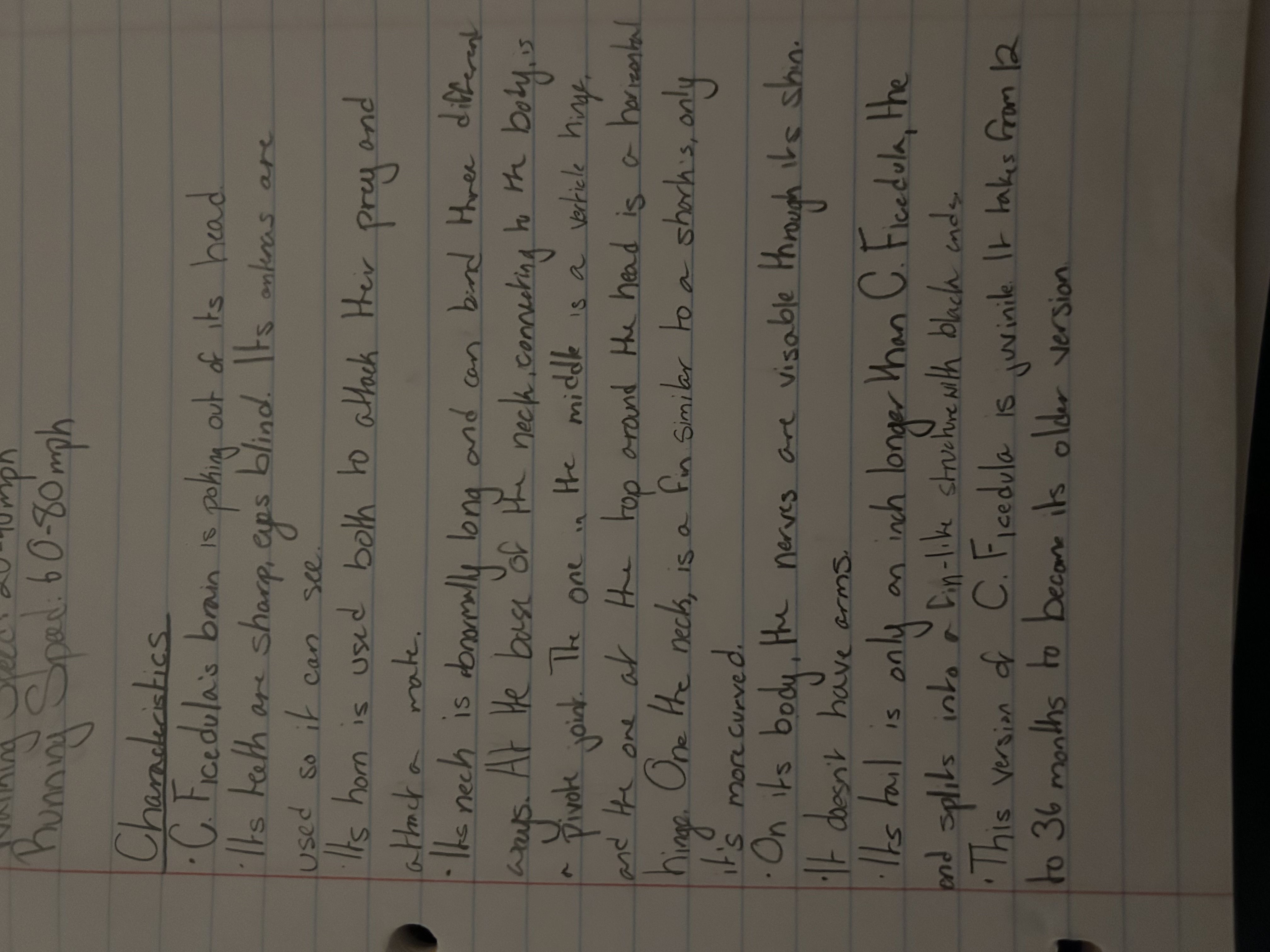 The handwriting in this sample exhibits a practical and straightforward style. The letters are generally upright with a slight slant, suggesting a balanced approach. There is a mix of rounded and angular forms, such as in the letters 'm' and 'n,' and 'a' and 'o,' indicating a blend of adaptability and determination. The writing appears functional and clear, focusing on conveying information directly, as seen in the descriptive listing of "characteristics".