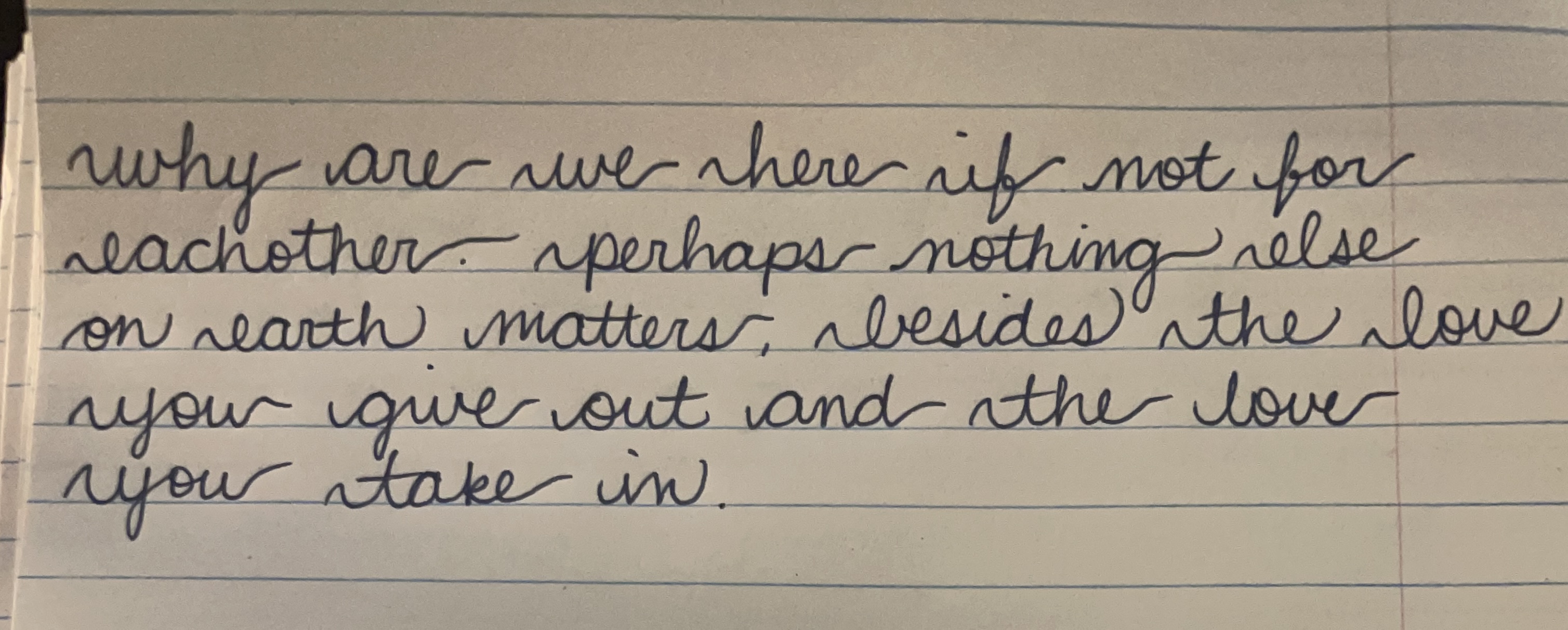 Based on this sample, the writer may be empathetic and value harmony in relationships. The rounded forms and connected letters suggest a desire for connection and cooperation with others. The positive slant of the writing indicates a hopeful outlook and a forward-thinking attitude. The attention to detail in the letter formations implies conscientiousness and a commitment to presenting oneself well.
