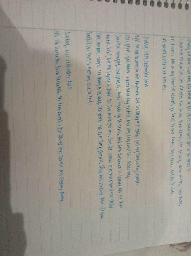 The handwriting exhibits a somewhat erratic and inconsistent style. There's a clear effort evident in the formation of the letters, but the execution is uneven, with some words appearing rushed and others more carefully crafted. The slant varies, sometimes leaning forward with urgency and at other times straightening up. There's a mix of rounded and angular letterforms, adding to the overall sense of variability. The letter spacing and word spacing is uneven. The size of the letters varies quite a lot. It could be described as a casual style, where function trumps form.