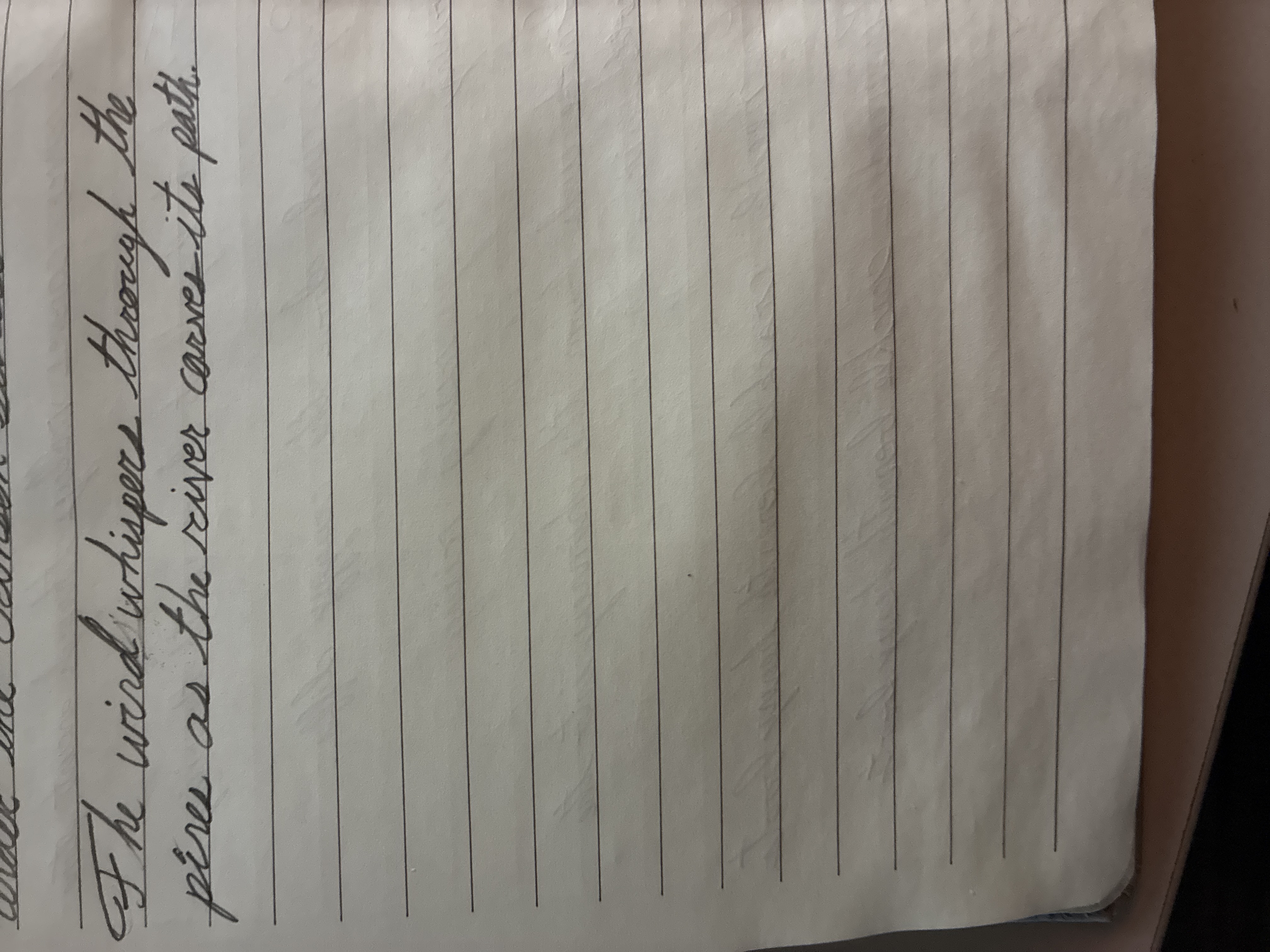 This handwriting sample displays a cursive style, characterized by a noticeable slant and connected letter formations. The loops in letters such as 'l' and 'h' are elongated, lending an airy quality to the script. Words flow together, with a gentle rhythm reminiscent of flowing water. The baseline is relatively stable, and the pressure appears consistent throughout, indicating a steady hand and a composed demeanor.