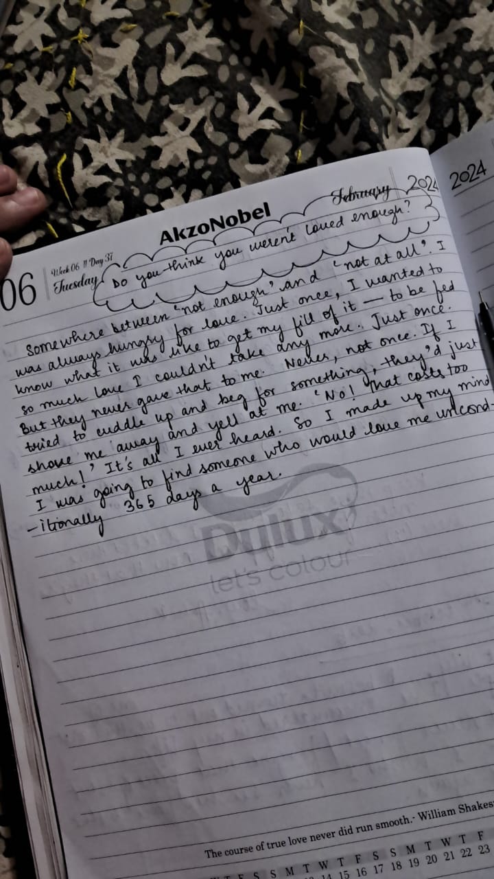 The personality traits suggested by this handwriting are those of someone who is expressive and possibly sensitive. The slant to the right often indicates a desire for connection and a forward-thinking nature. The even pressure suggests a generally stable emotional state, though the content of the writing reveals deeper emotions and vulnerabilities. There's an openness and honesty evident in the way the words are formed, indicating a person who is not afraid to be authentic.