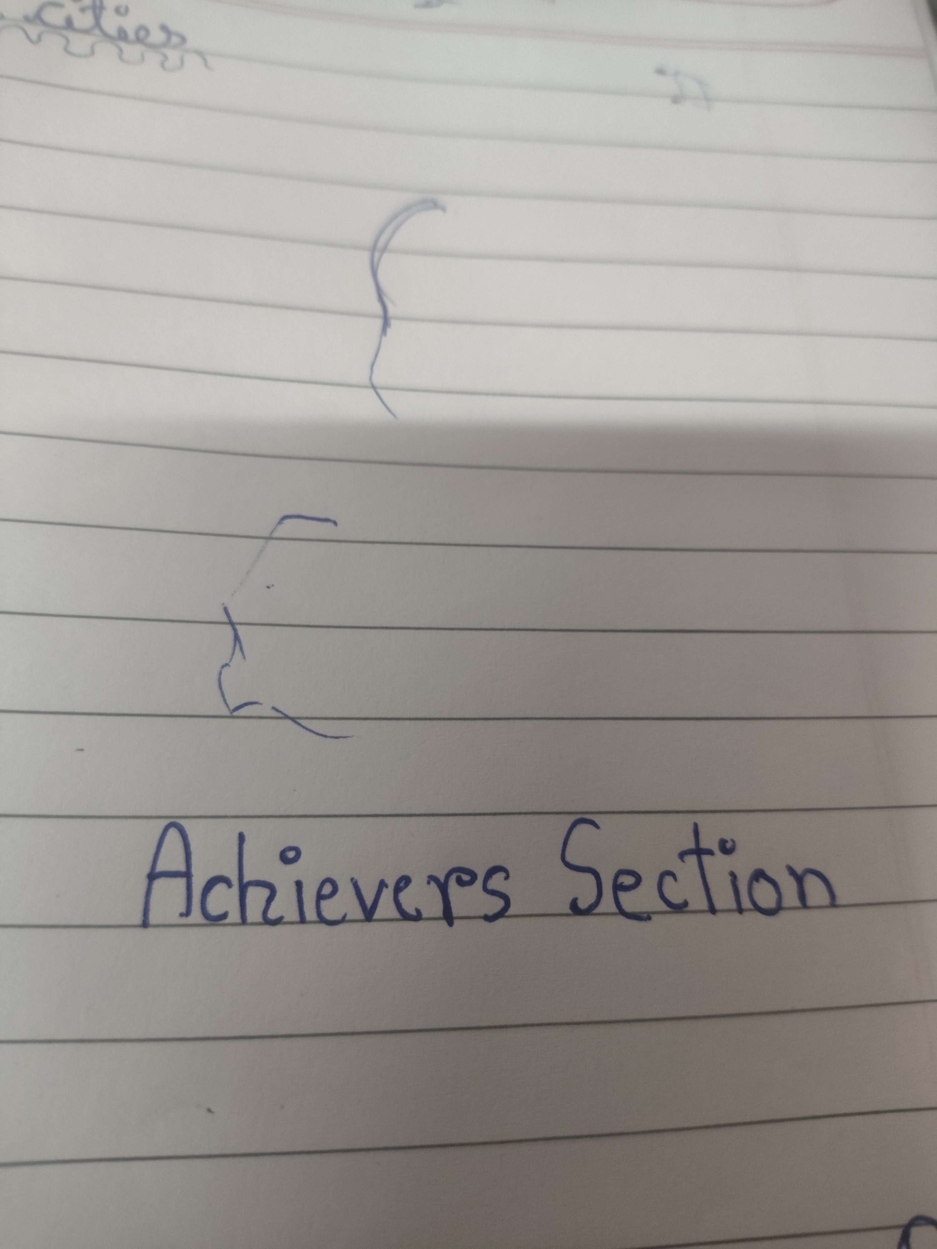 The handwriting sample presents a print-like style with rounded letterforms. The words "Achievers Section" are neatly arranged with consistent spacing. The baseline is mostly adhered to, though there is some variation in letter height, and a slight upward slant is noticeable. The strokes appear to be carefully executed, lacking any significant flourishes or abrupt changes in pressure.