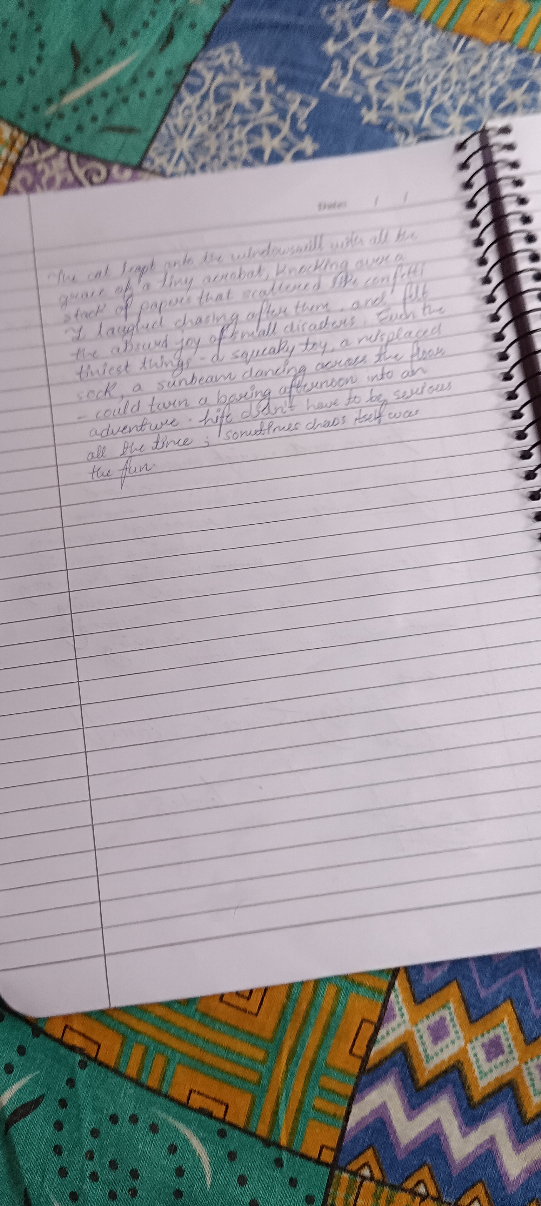 Based on the handwriting, the writer may possess a thoughtful and expressive personality. The slight rightward slant suggests an openness to new experiences and a desire to connect with others. The rounded letter forms may reflect a warm and approachable nature, and the consistent baseline implies a sense of stability and reliability. The care taken in forming the letters could also indicate a patient and detail-oriented individual, capable of finding joy in simple things, much like the poem suggests.