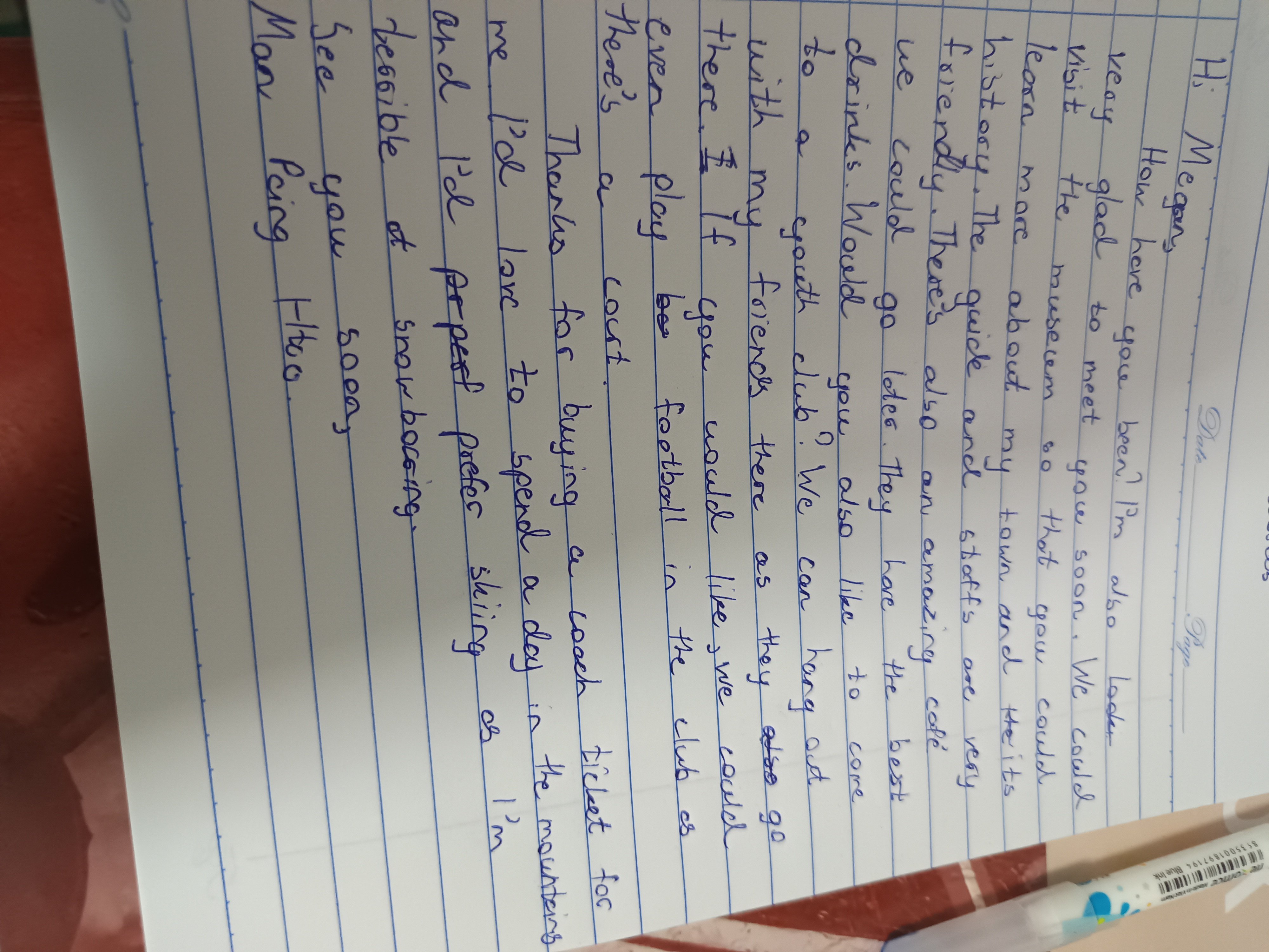 Based on the upright nature and even spacing, the writer likely possesses a balanced personality. They are probably sociable, as evidenced by the friendly tone of the letter. The slight variability suggests adaptability and a degree of emotional expressiveness. The clear letter formation indicates a desire to communicate effectively and be understood. They likely have a friendly disposition.