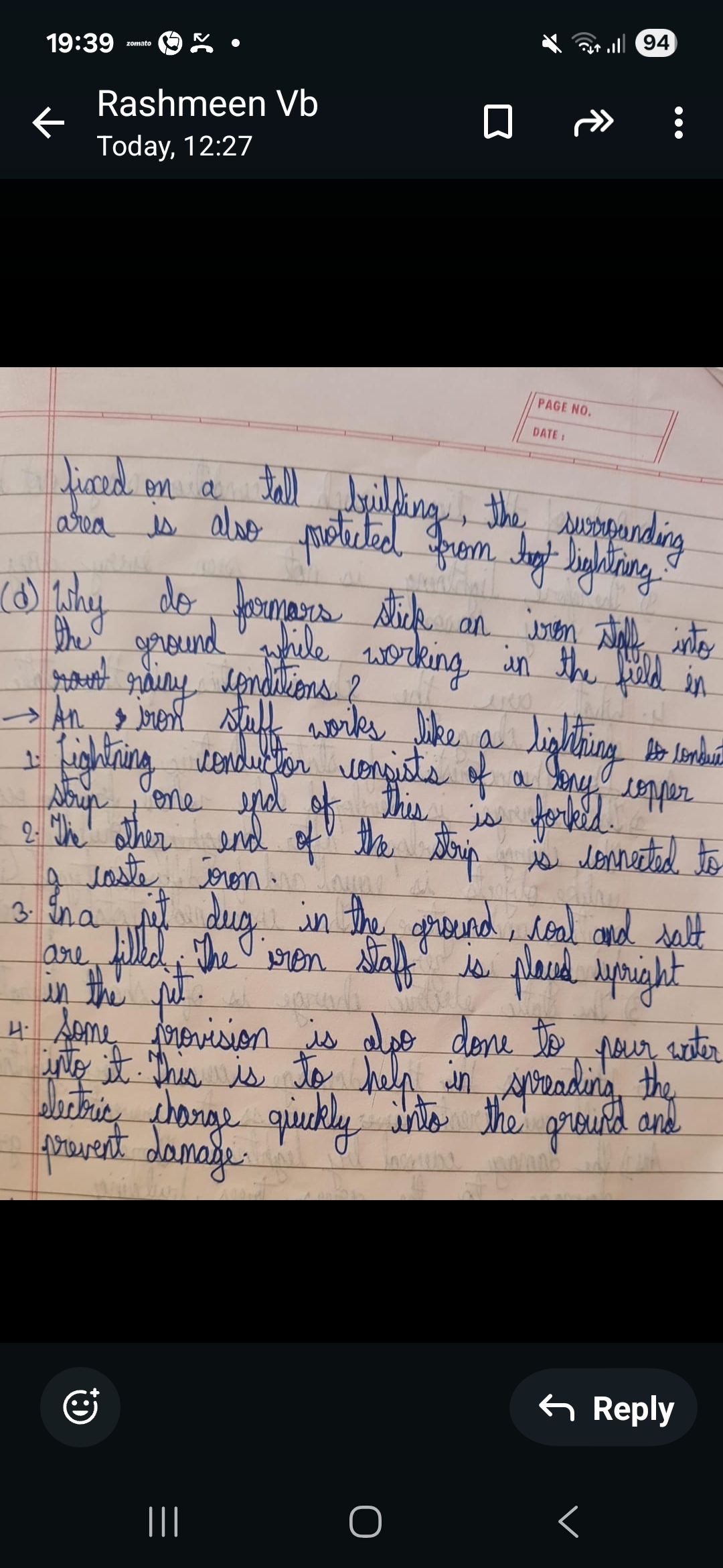 The handwriting style is characterized by a rounded and connected script. The loops in letters like 'l' and 'b' are generously formed, suggesting openness. The slant is mostly upright with slight variations, indicating a balance between assertion and restraint. Words are generally spaced well, promoting legibility, though the size varies slightly, such as in the phrase 'electric charge quickly', which seems a bit rushed. The pressure applied appears consistent, lending a sense of stability to the overall appearance. Some words, such as 'building' and 'surrounding' are written with flair.