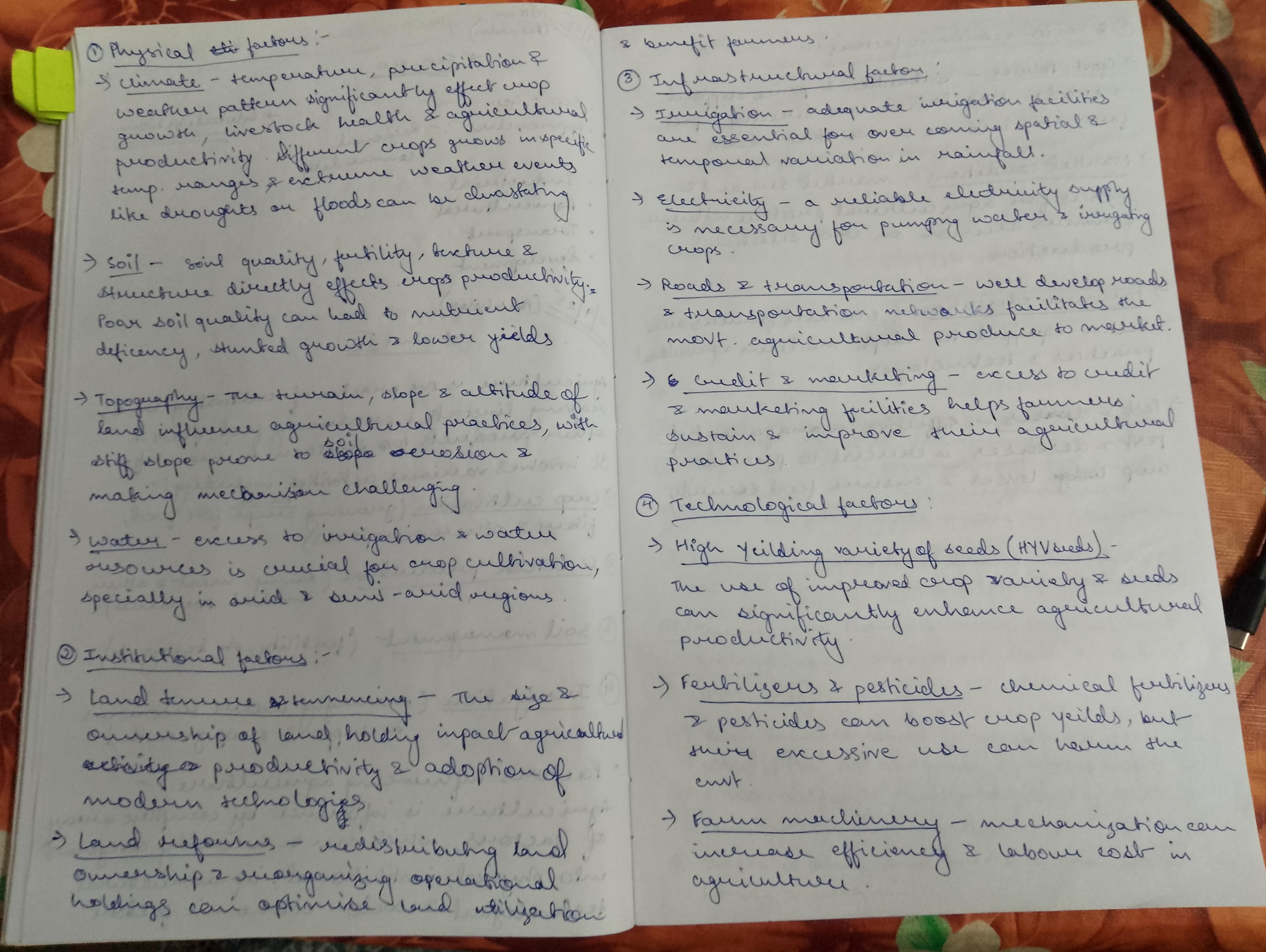The handwriting style is neat and organized, suggesting a structured approach to thinking and note-taking. The letter size is fairly consistent, although there is some variation in the height of ascenders and descenders. The writing appears somewhat upright, with a slight slant to the right in some sections. The spacing between words is generally adequate, though some areas feel a little crowded. There is also evidence of underlining for emphasis, such as "Soil" and "Water", indicating a desire to highlight key concepts.