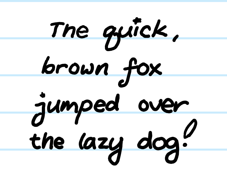 The handwriting is characterized by rounded, almost cartoonish letter formations. Words like "quick", "brown", and "lazy" exhibit a consistent curve, giving the writing a playful and approachable feel. The letters are generally well-formed and legible, with consistent spacing between words, although there's a slight tendency for letters to crowd together. The overall impression is neat and easy to read, though not overly formal.