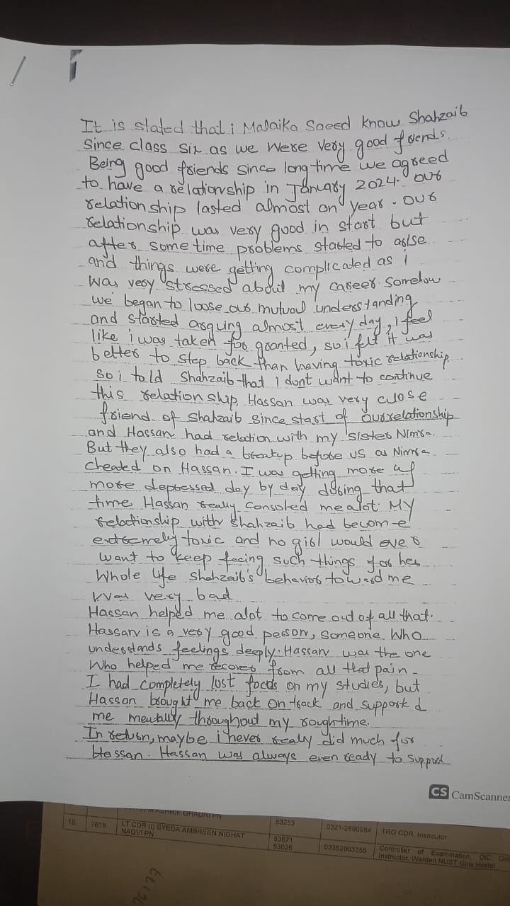 The handwriting suggests a person who is empathetic and supportive, as reflected in the content of the writing itself, with words like "Hassan helped me alot." The forward slant and rounded letterforms indicate a desire for connection and harmony in relationships. However, the inconsistencies might point to moments of inner conflict or a struggle to maintain equilibrium during stressful times. The writer appears to be someone who values close relationships and is deeply affected by their experiences.
