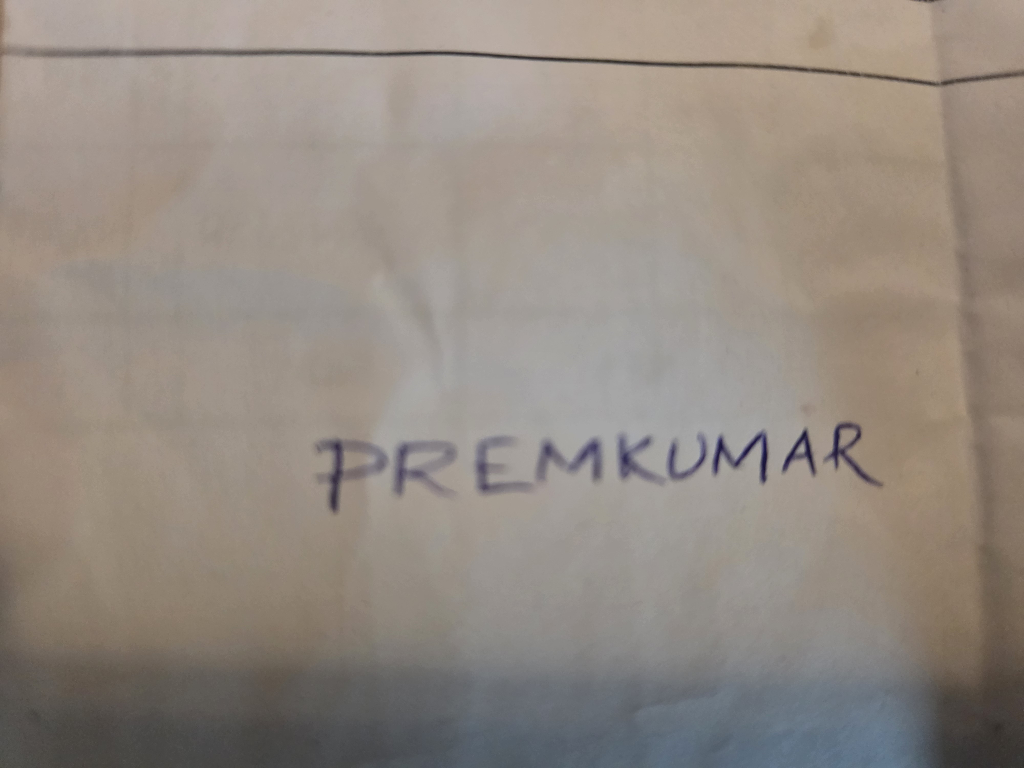 The handwriting sample, "PREMKUMAR", presents a style that is clear and straightforward, but slightly inconsistent. The letterforms are generally well-defined, but there are variations in stroke pressure and letter size, suggesting a degree of spontaneity or perhaps a lack of meticulousness. The spacing between letters and the overall layout appear to be functional, prioritizing legibility over elaborate aesthetics.